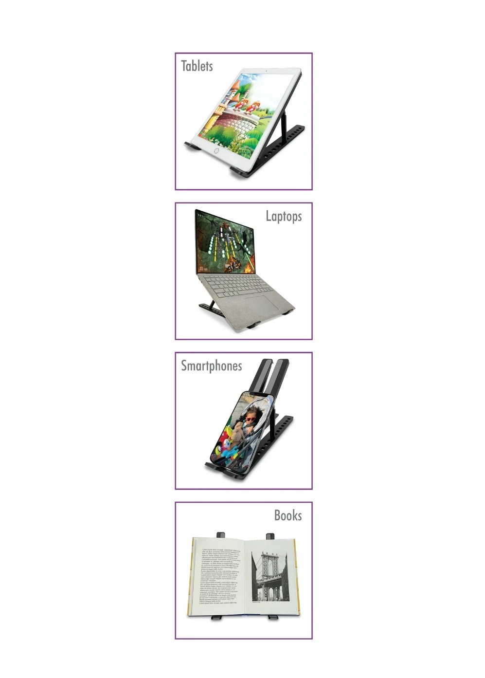 Особенности: Adjustable Stand, Anti-Slip, Foldable, Universal Compatability, Travel Pouch, Folds for travel, HELPS KEEP DEVICE COOL