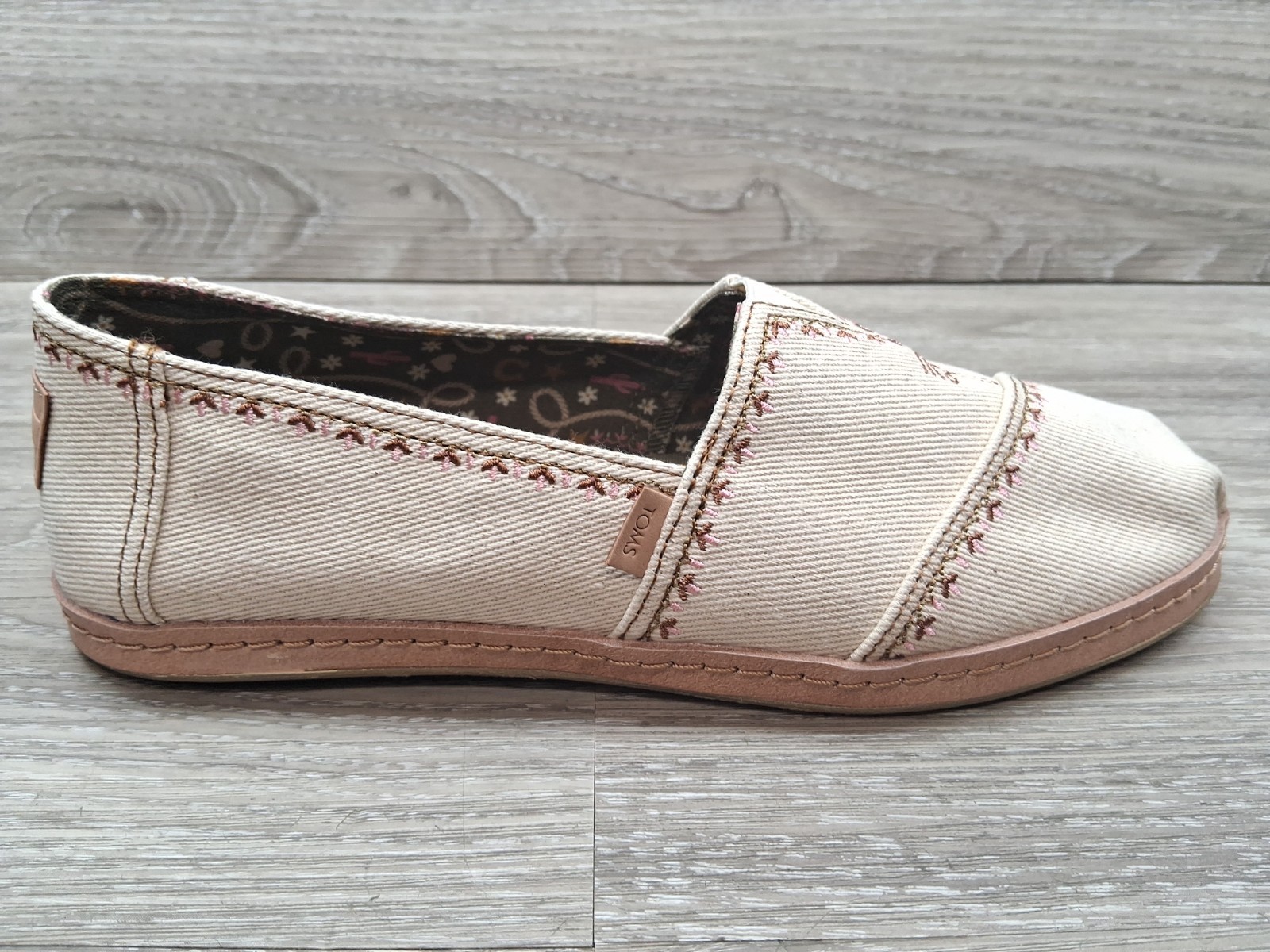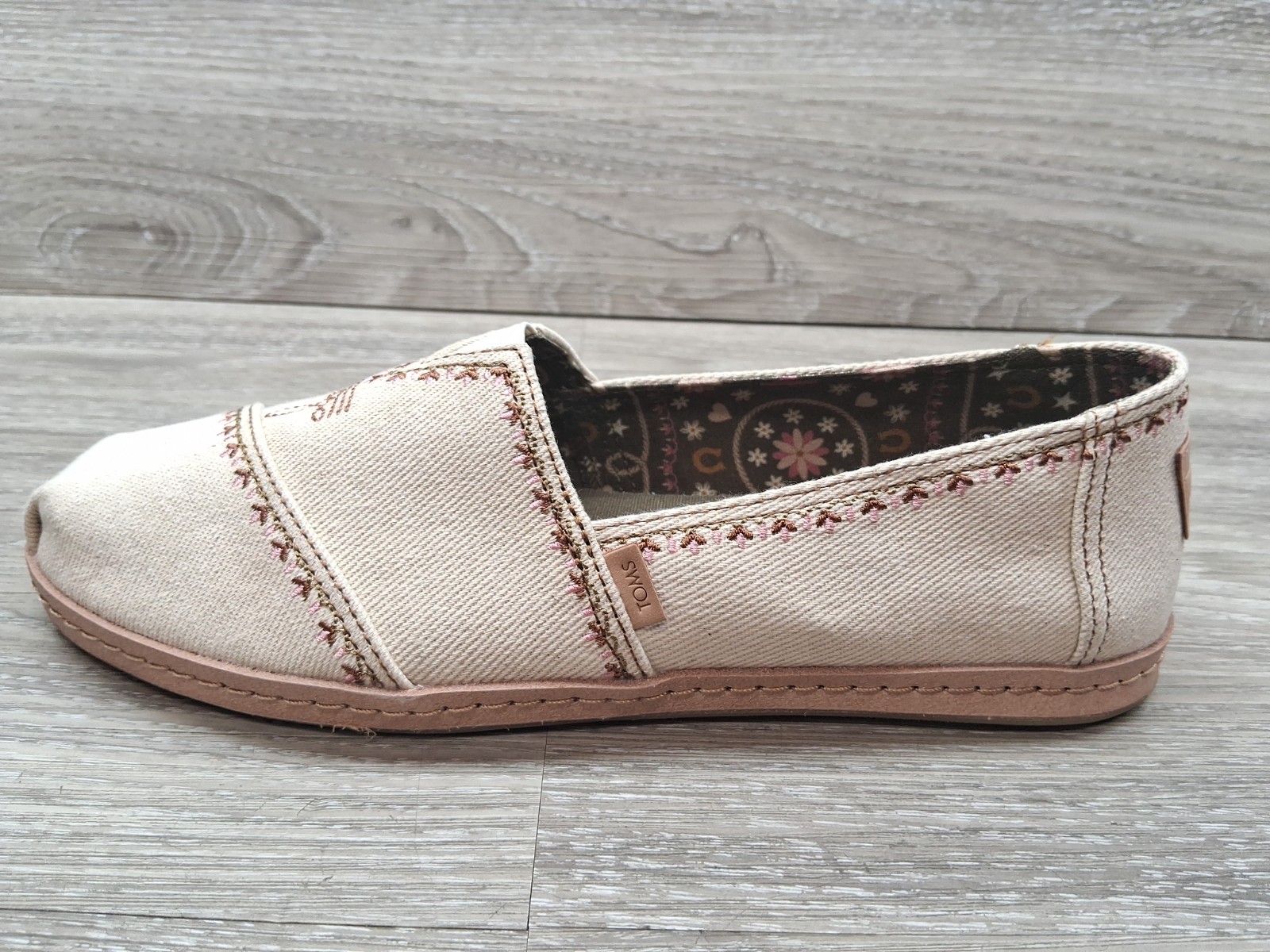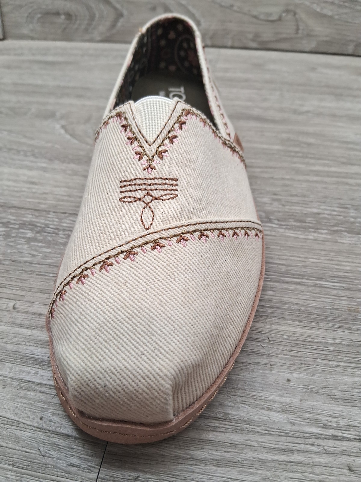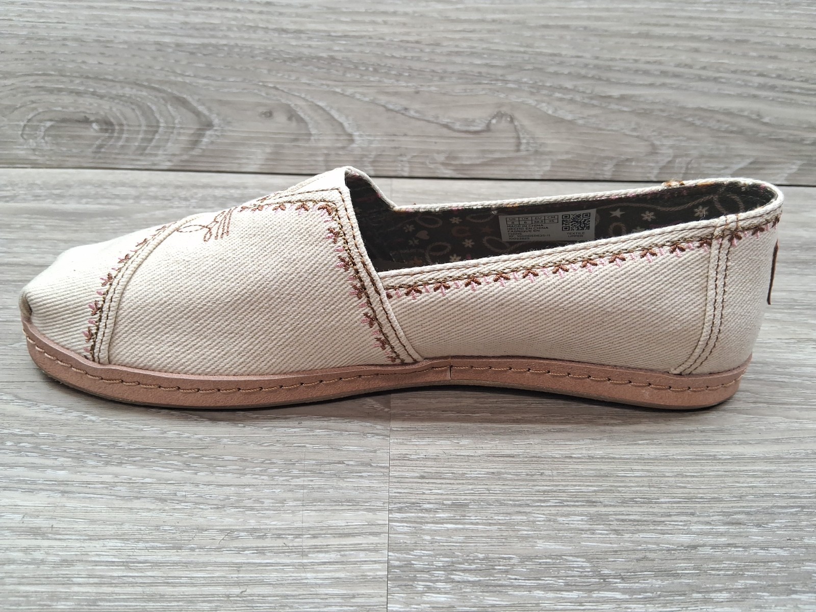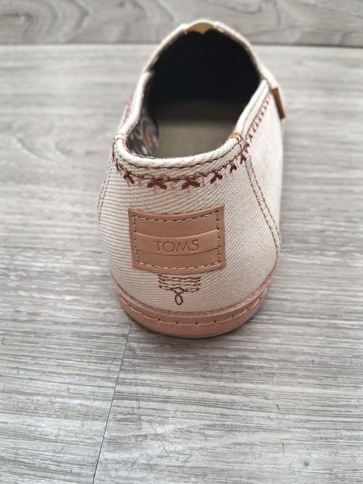 TOMS Alpargata Beige Soft Twill/EmbroideryLeather Wrap Shoe Womens 8
