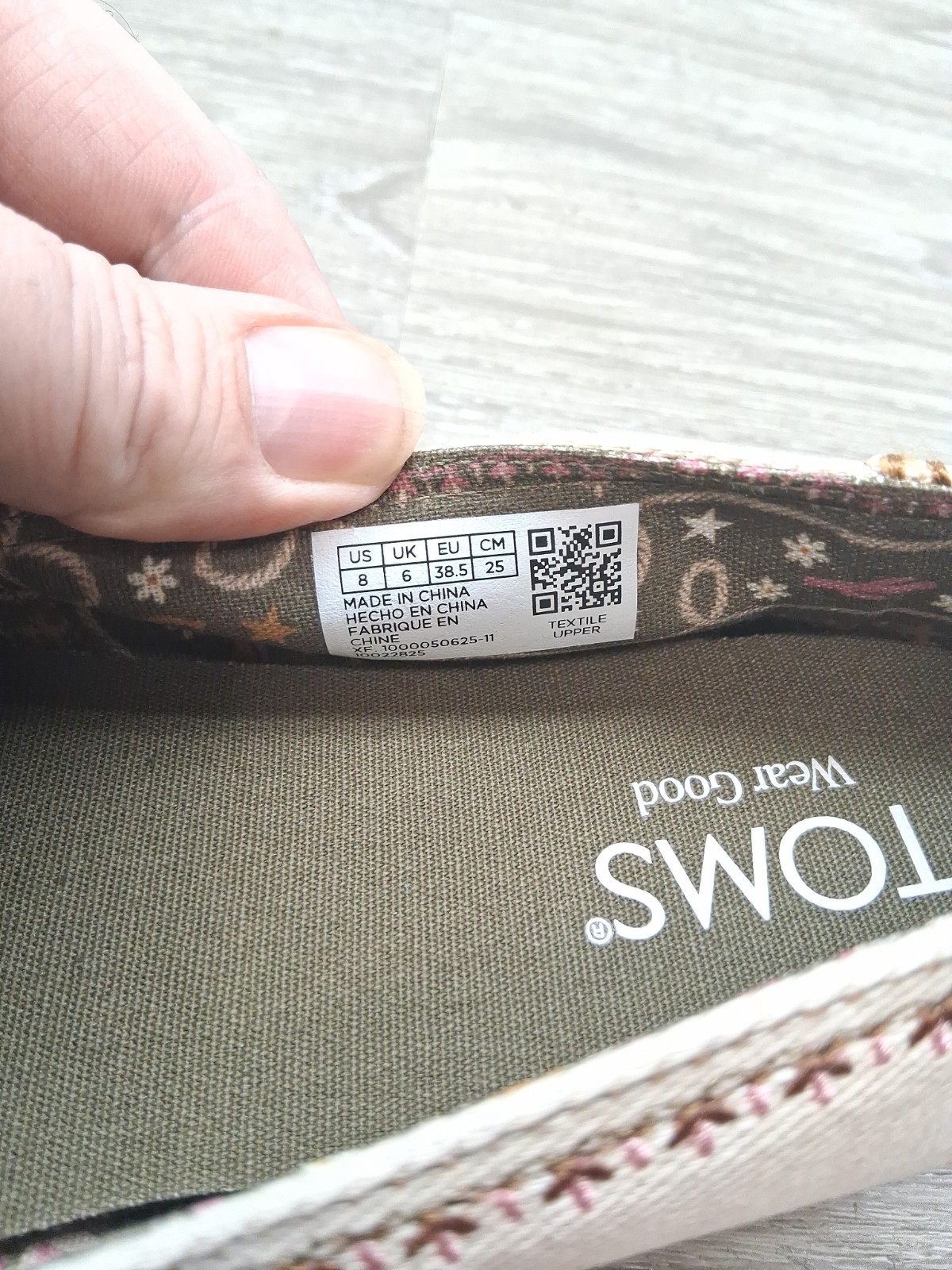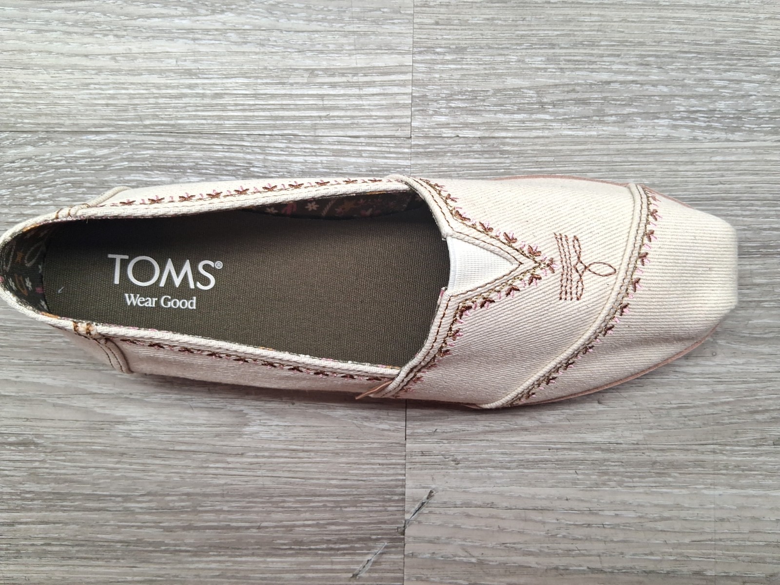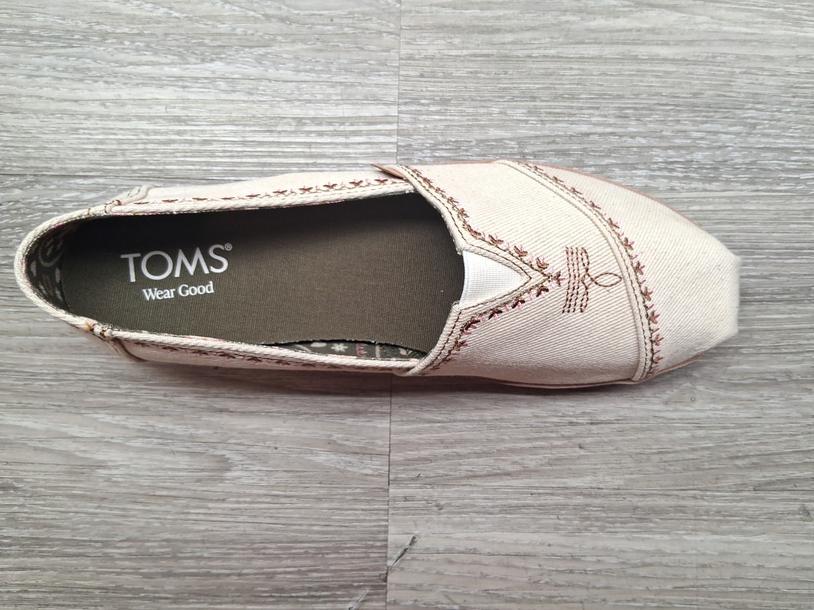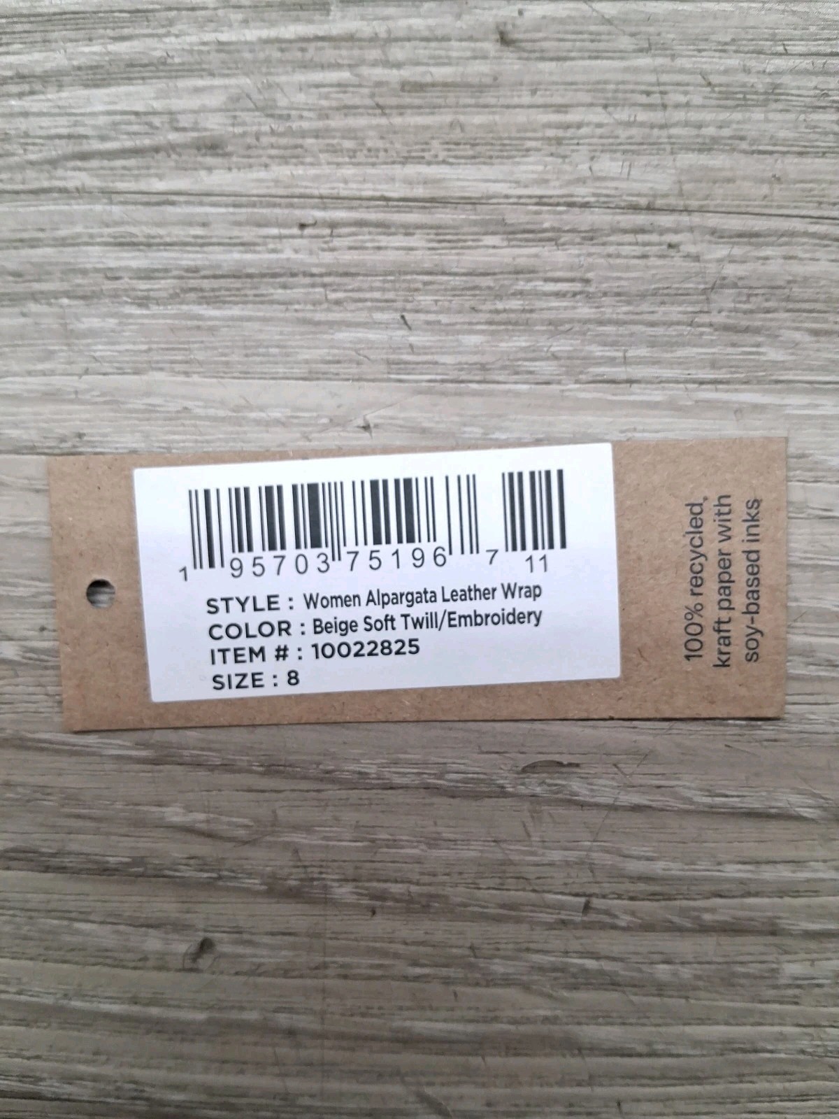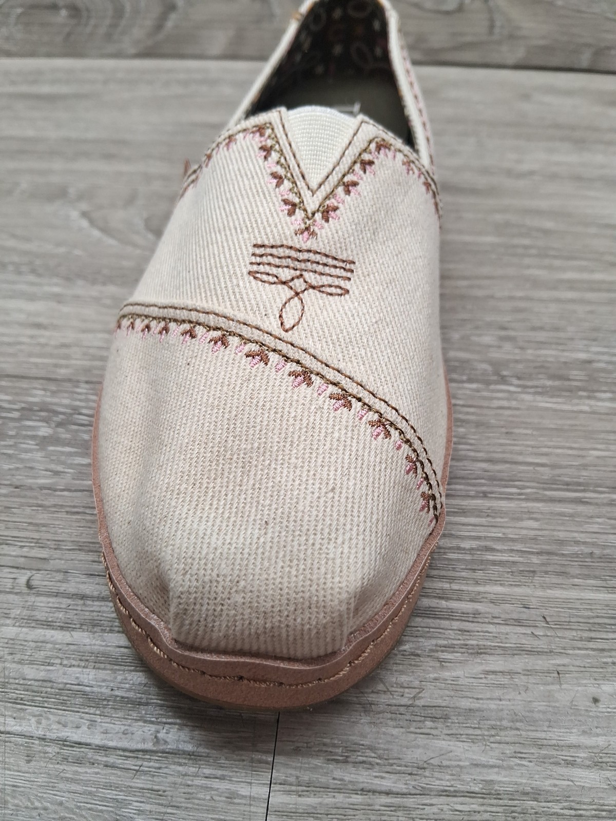 TOMS Alpargata Beige Soft Twill/EmbroideryLeather Wrap Shoe Womens 8