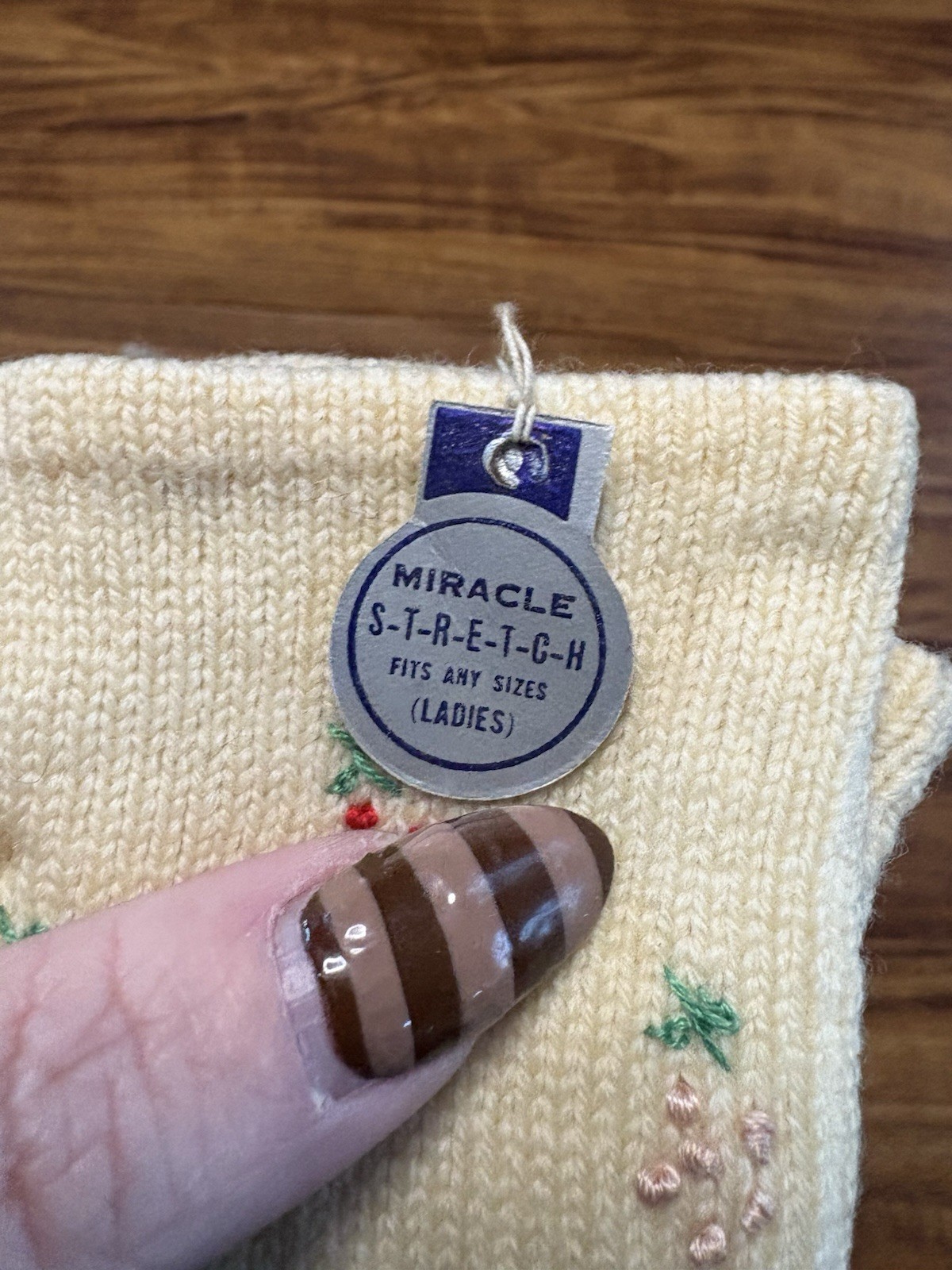 Vintage Ivory Knit Gloves with Flower Detail Hong Kong NWT Wool/nylon Mix