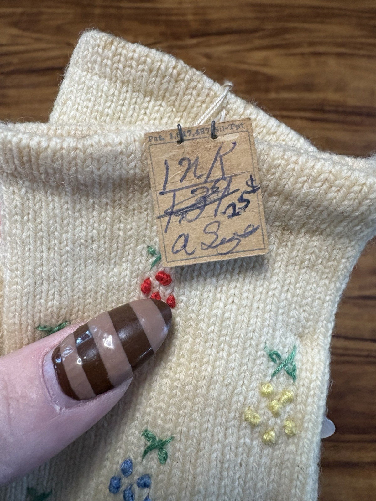 как выглядит Vintage Ivory Knit Gloves with Flower Detail Hong Kong NWT Wool/nylon Mix фото