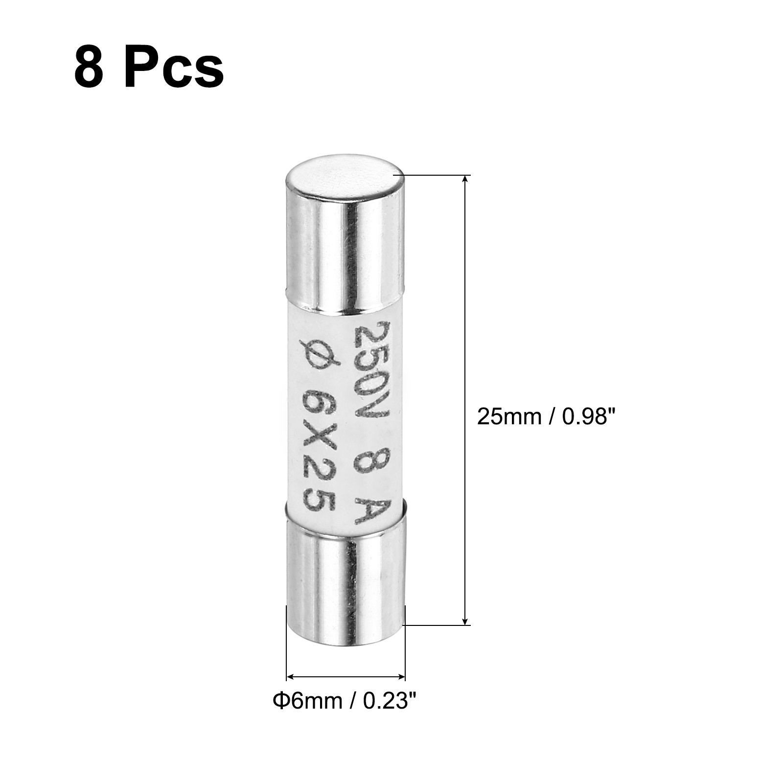 Ceramic Cartridge Fuses 8A 250V 6x25mm Fast Blow for Energy Saving Lamp 8pcs