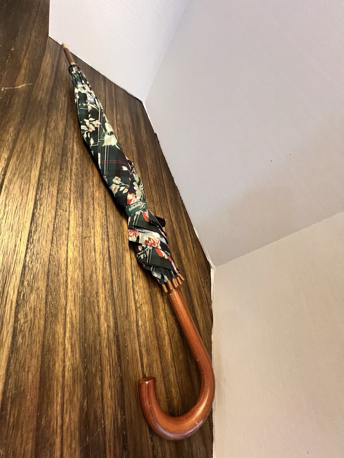 как выглядит VTG Ralph Lauren Umbrella Floral Plaid Green Navy Blue Parasol Wood Cane Handle фото