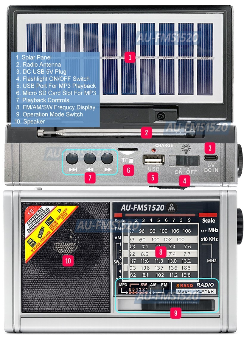 как выглядит AM/FM Shortwave Solar Radio With Bluetooth Speaker Flashlight MP3 Player фото