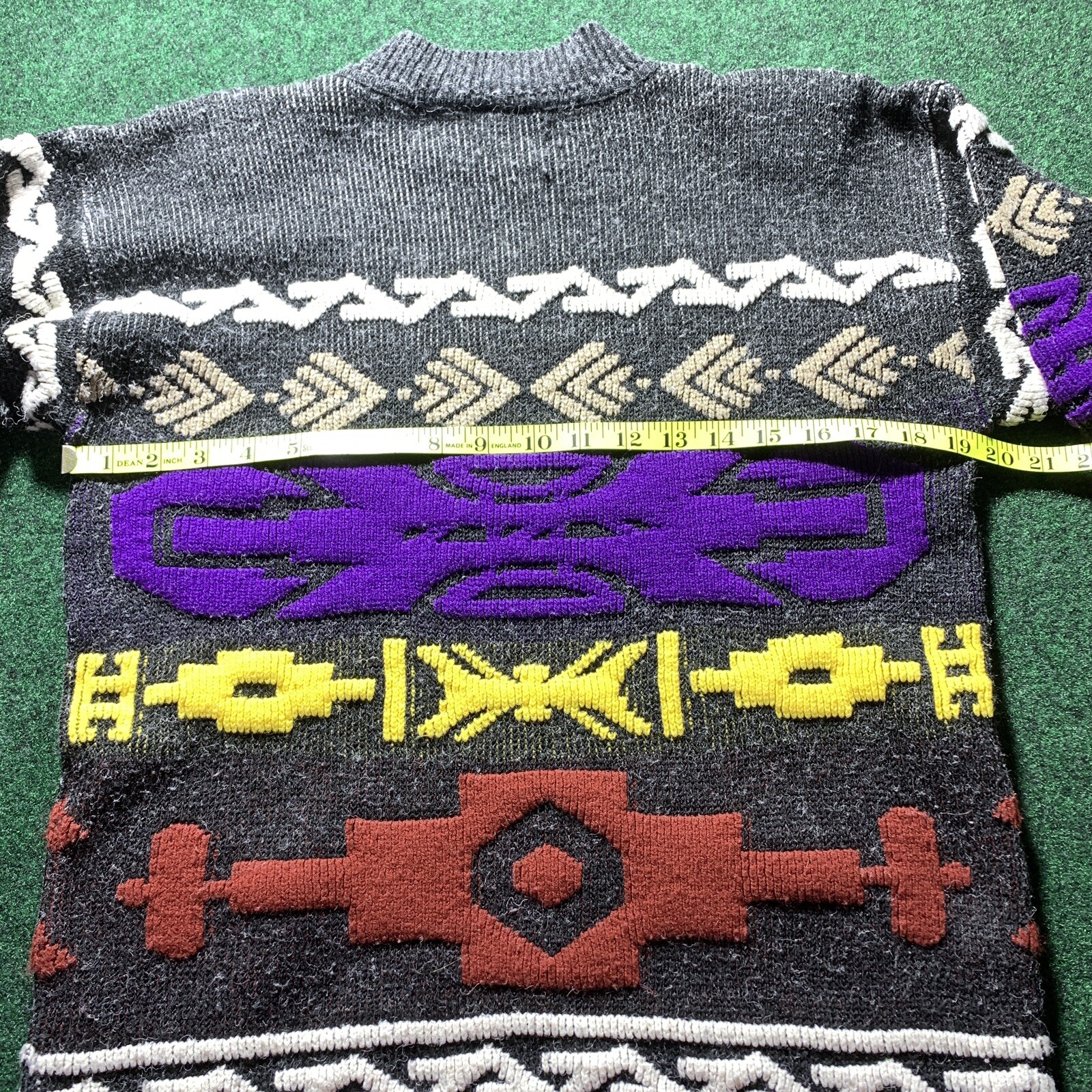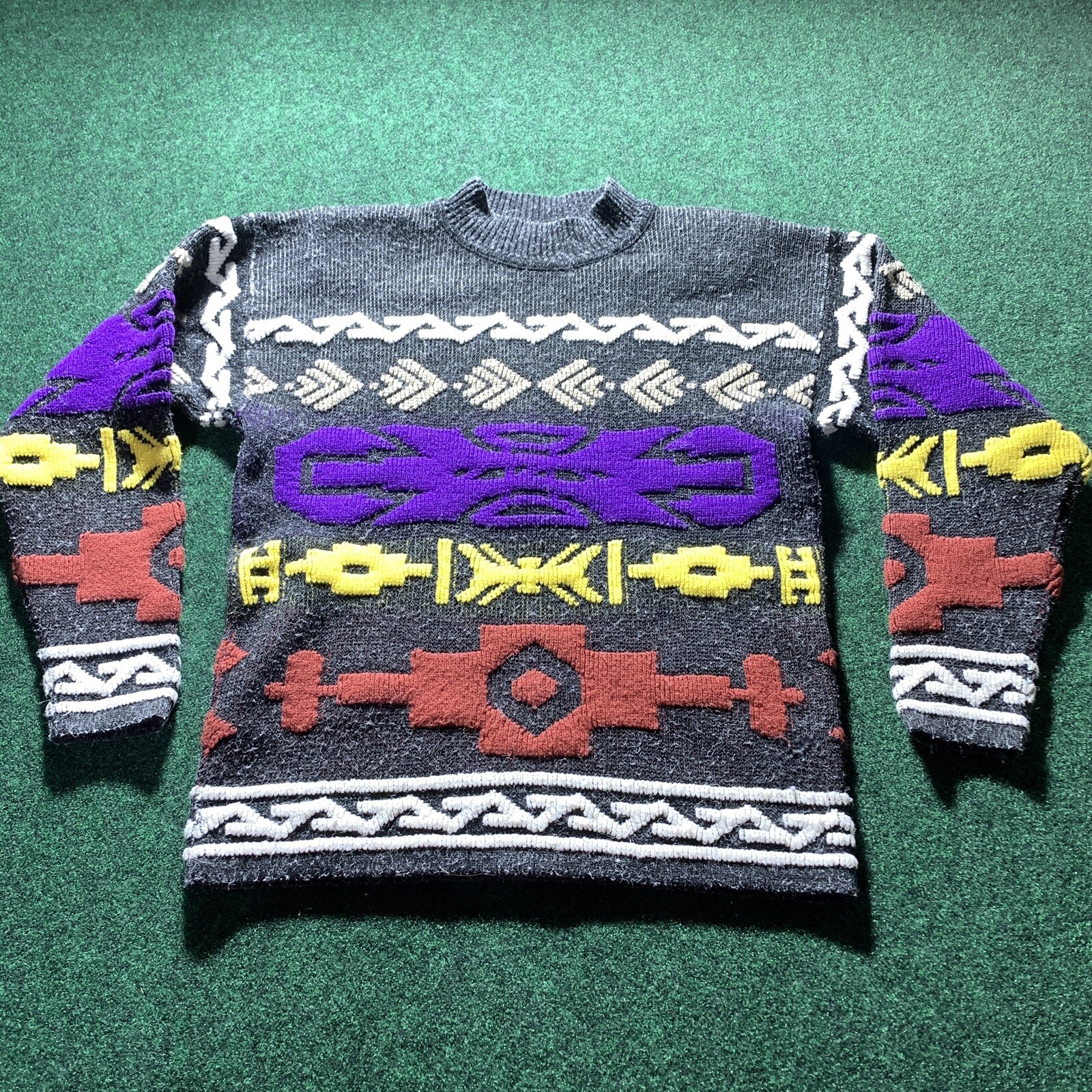 как выглядит KEREN Sweater MED Acrylic Blend Aztec Design Soft 3D Pads USA Gray 80s Vtg фото