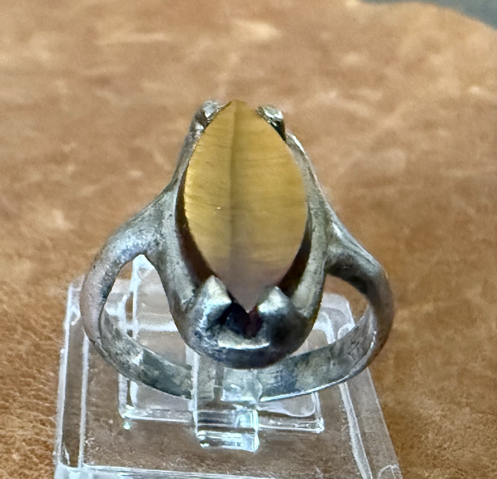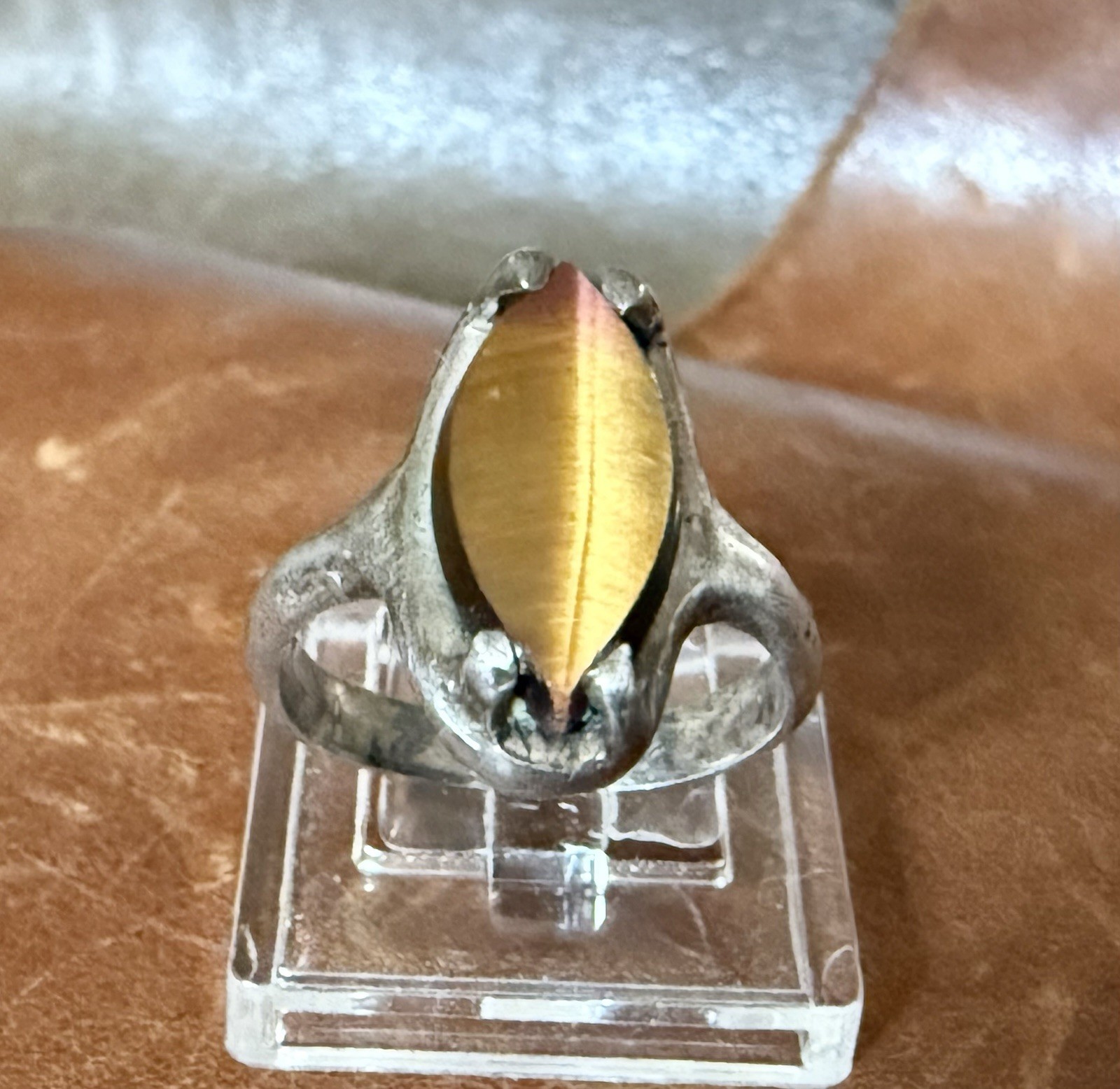 как выглядит Beautiful Vintage Natural Tigers Eye Sterling Silver 925 Ring Size 5 фото