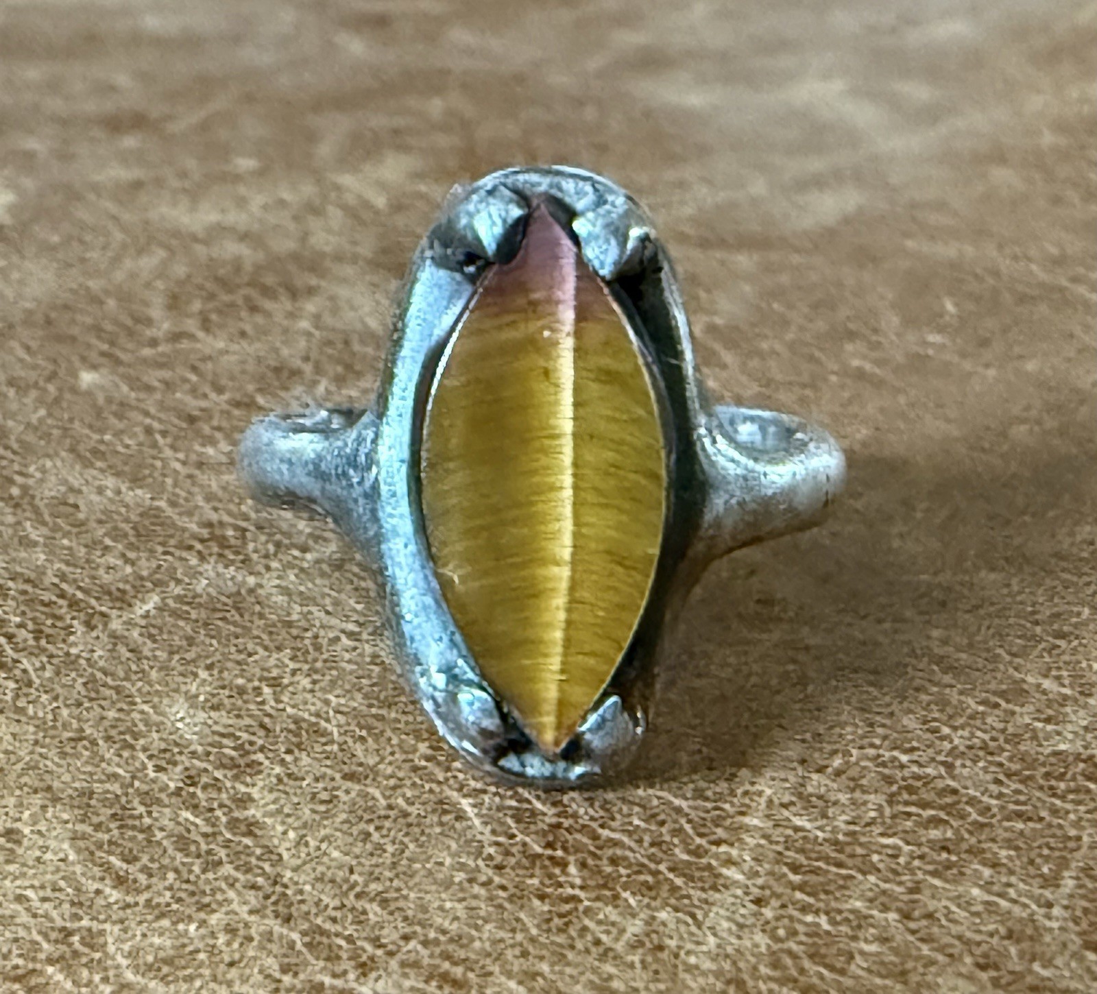 Beautiful Vintage Natural Tiger's Eye Sterling Silver 925 Ring Size 5