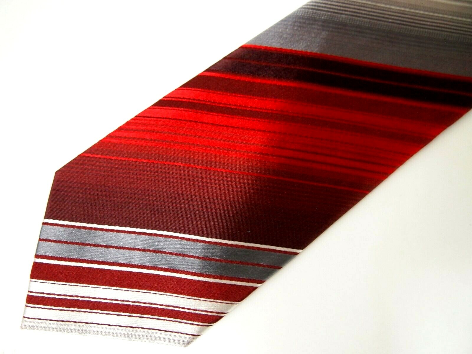Kenneth Cole Reaction Mens Necktie Tie Burgundy Red Silver Striped Silk 59