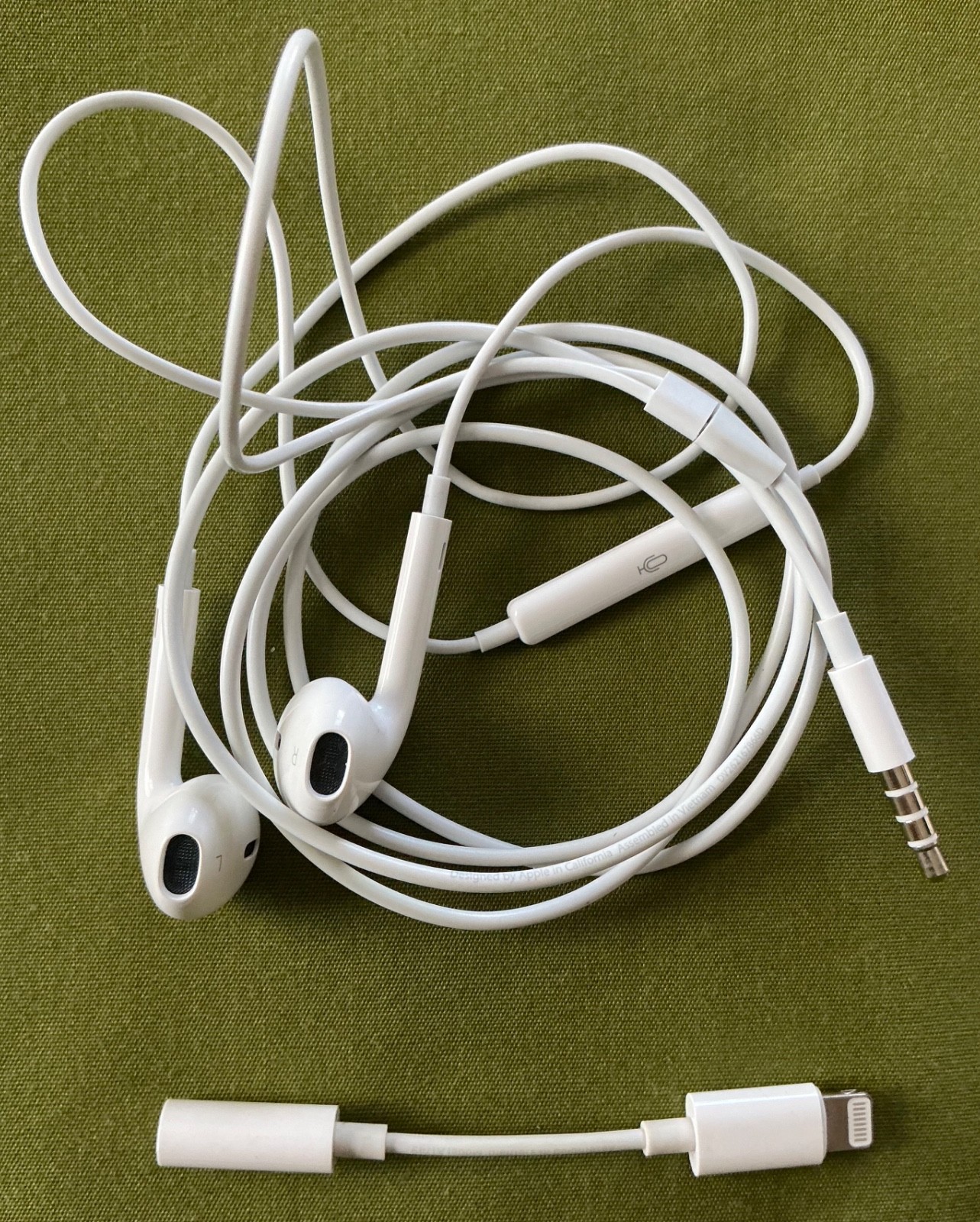Apple EarPods 3.5mm Headphone Plug White w/Lightning to 3.5mm Adapter Bundle
