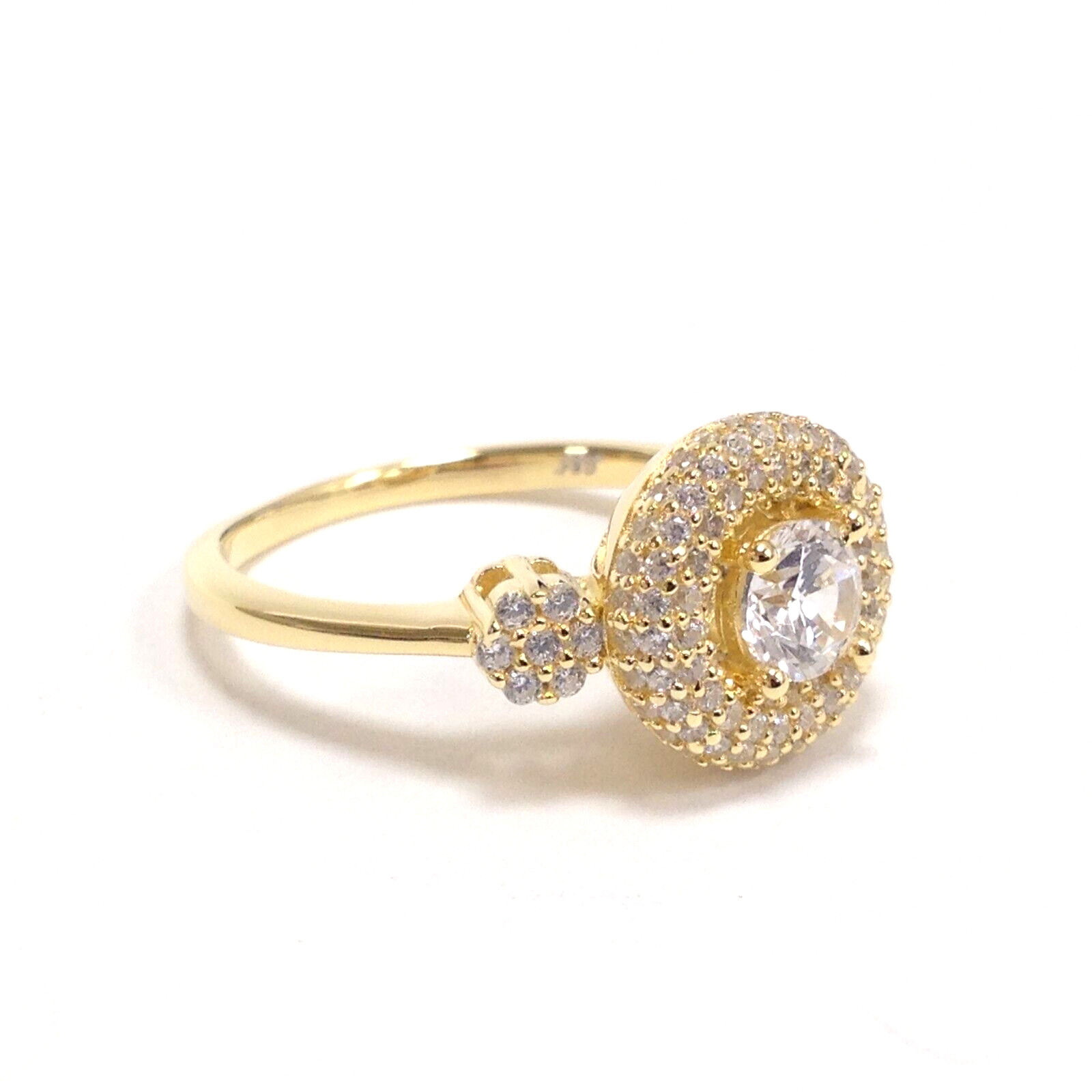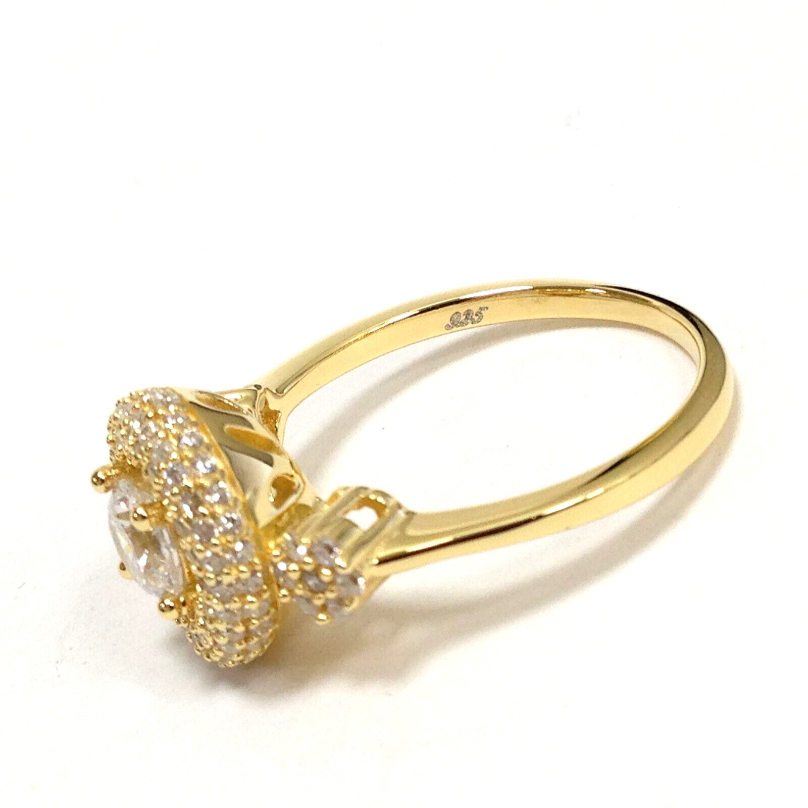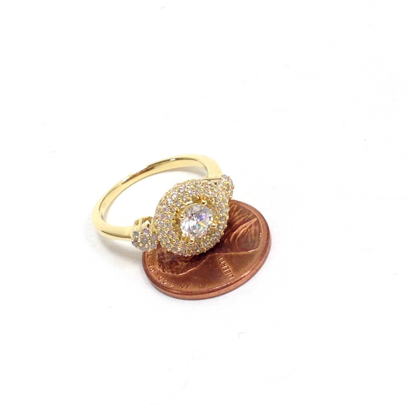 925 Sterling Silver Yellow Gold Vermeil CZ Stone Engagement Wedding Ring Size 7
