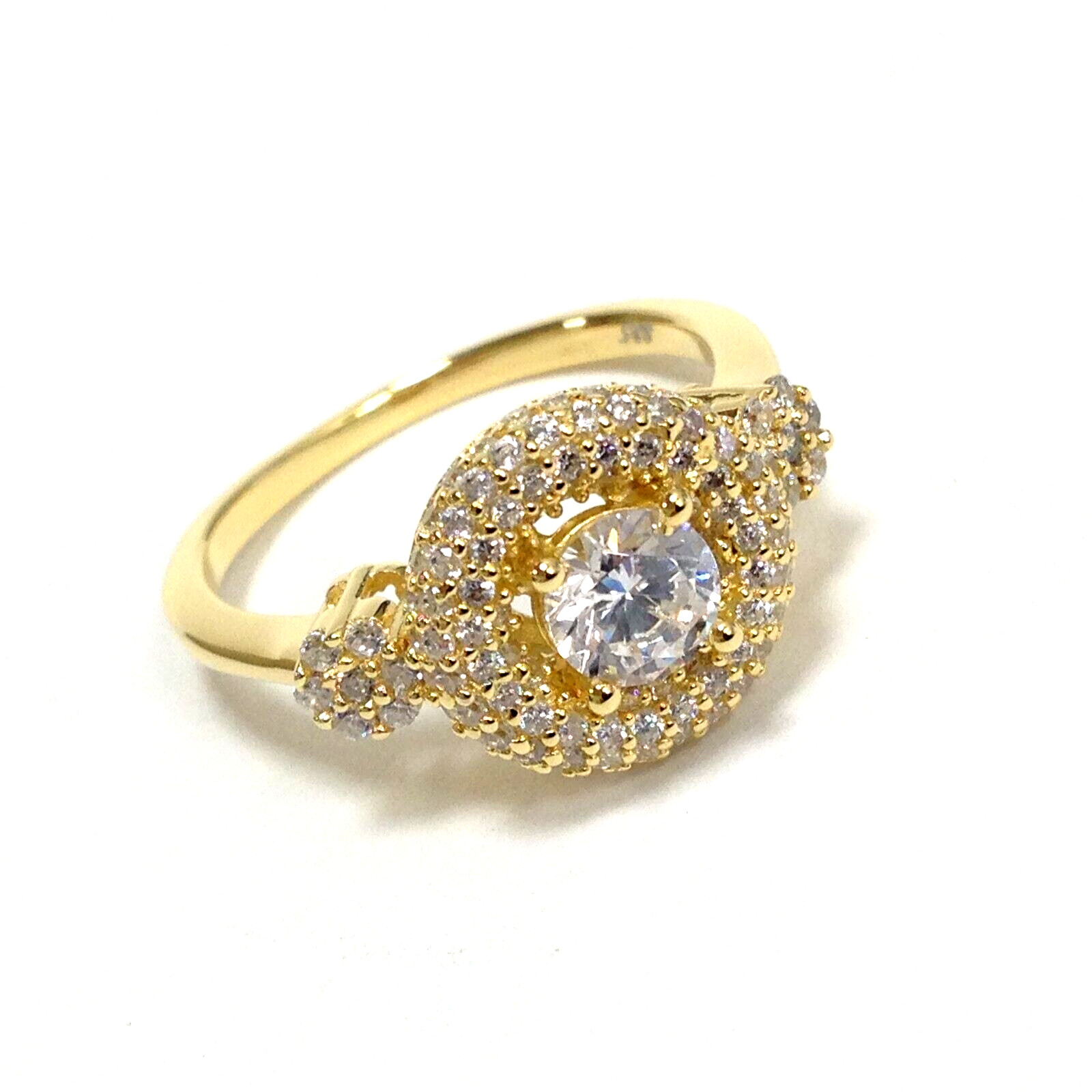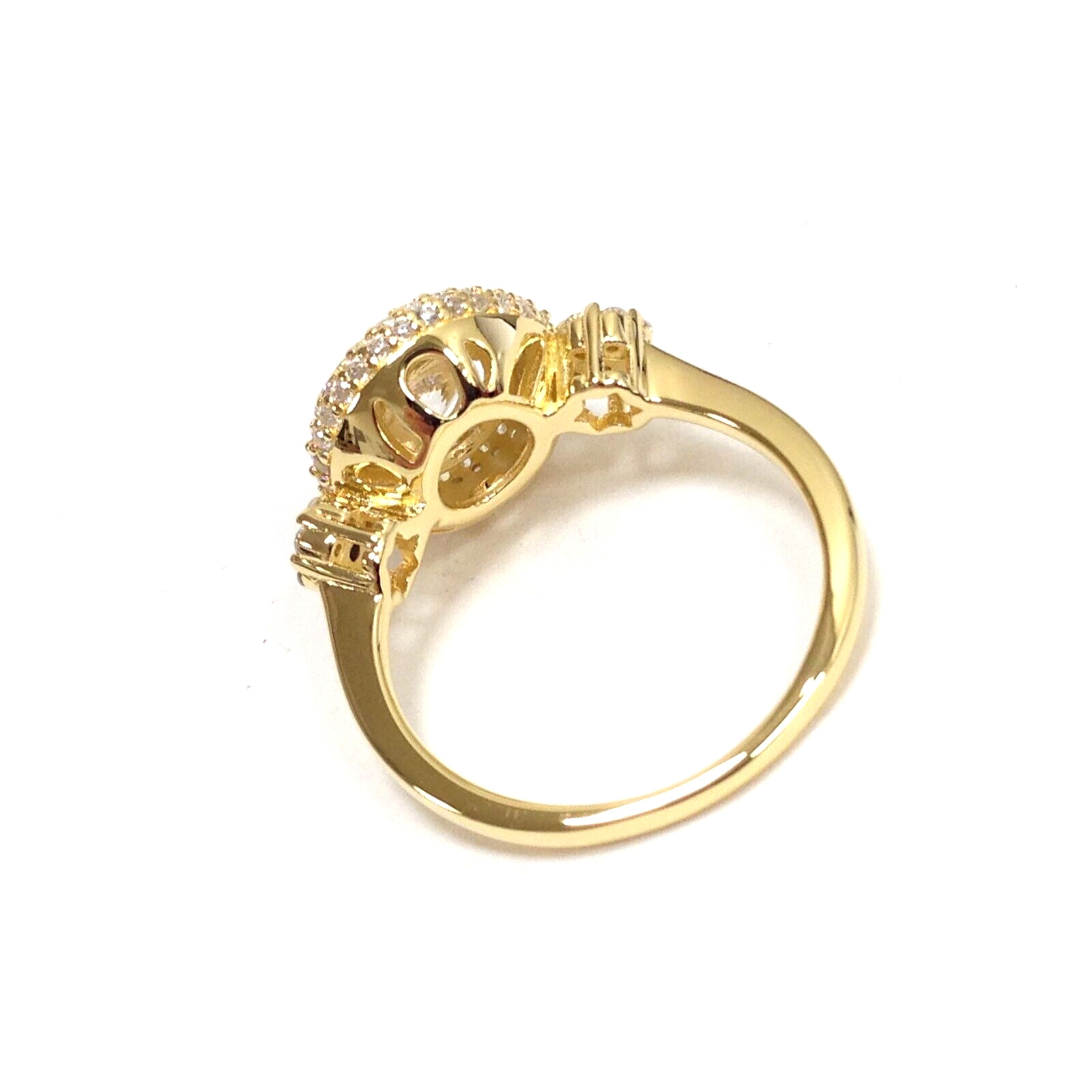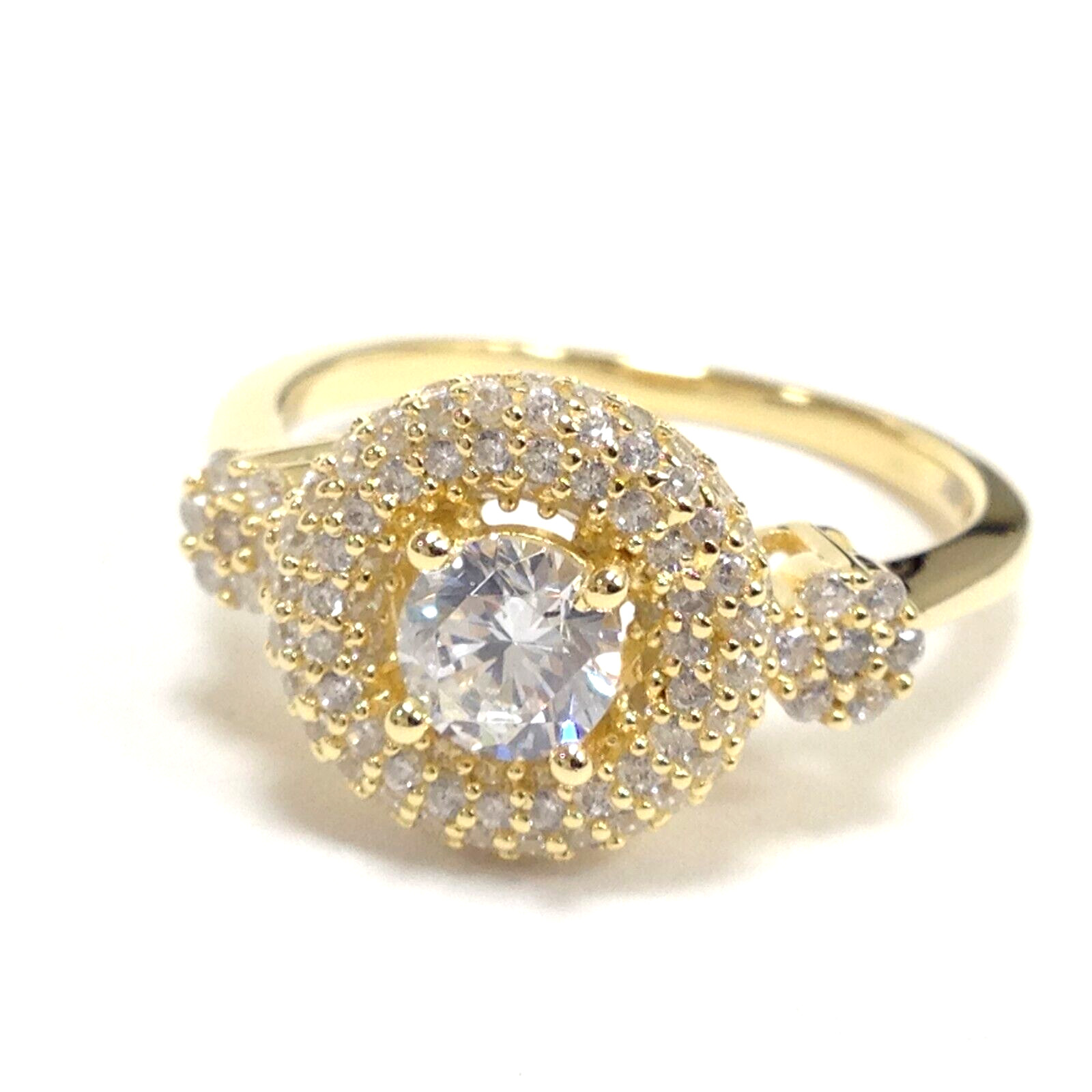 925 Sterling Silver Yellow Gold Vermeil CZ Stone Engagement Wedding Ring Size 7