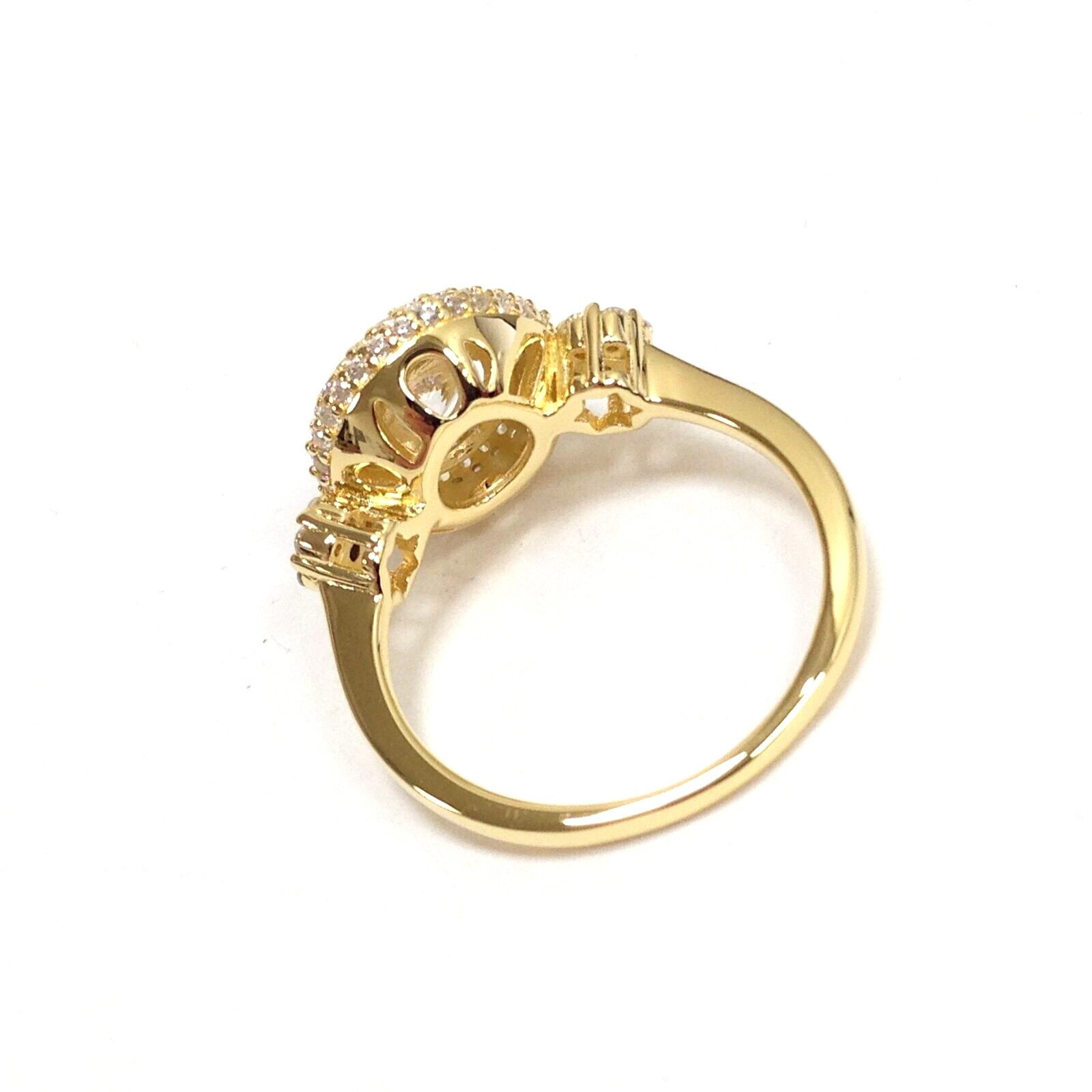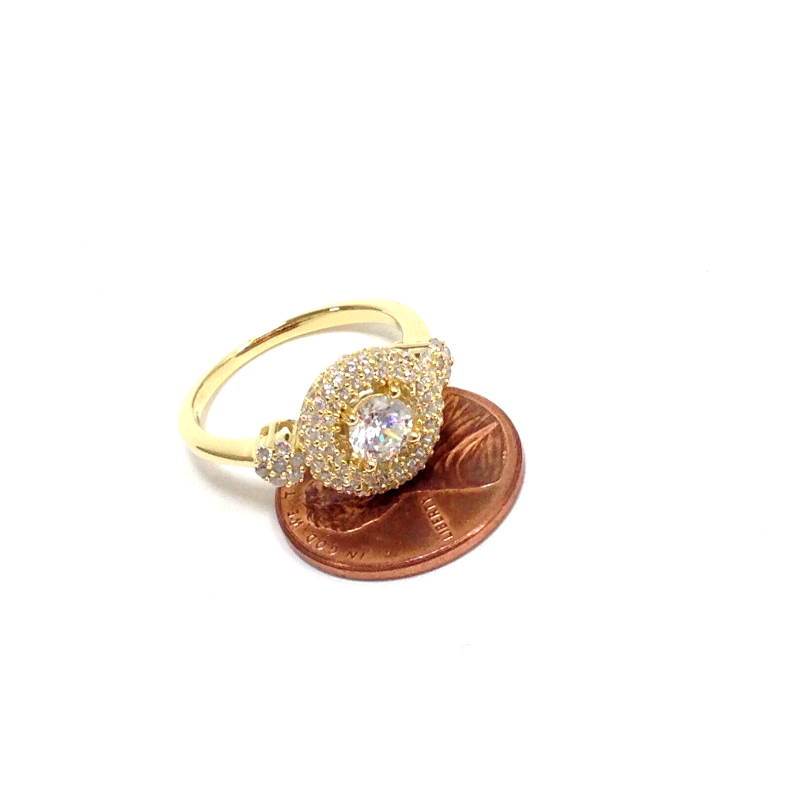 925 Sterling Silver Yellow Gold Vermeil CZ Stone Engagement Wedding Ring Size 6