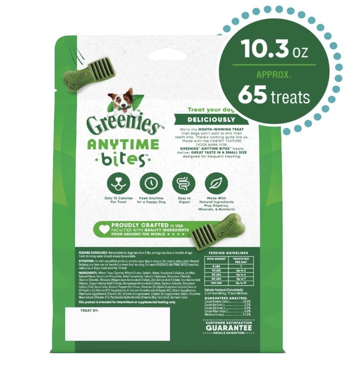 2 Greenies Anytime Bites 65 Chewy Dental Mint Dog Treats 10.3 Oz each Bite Size