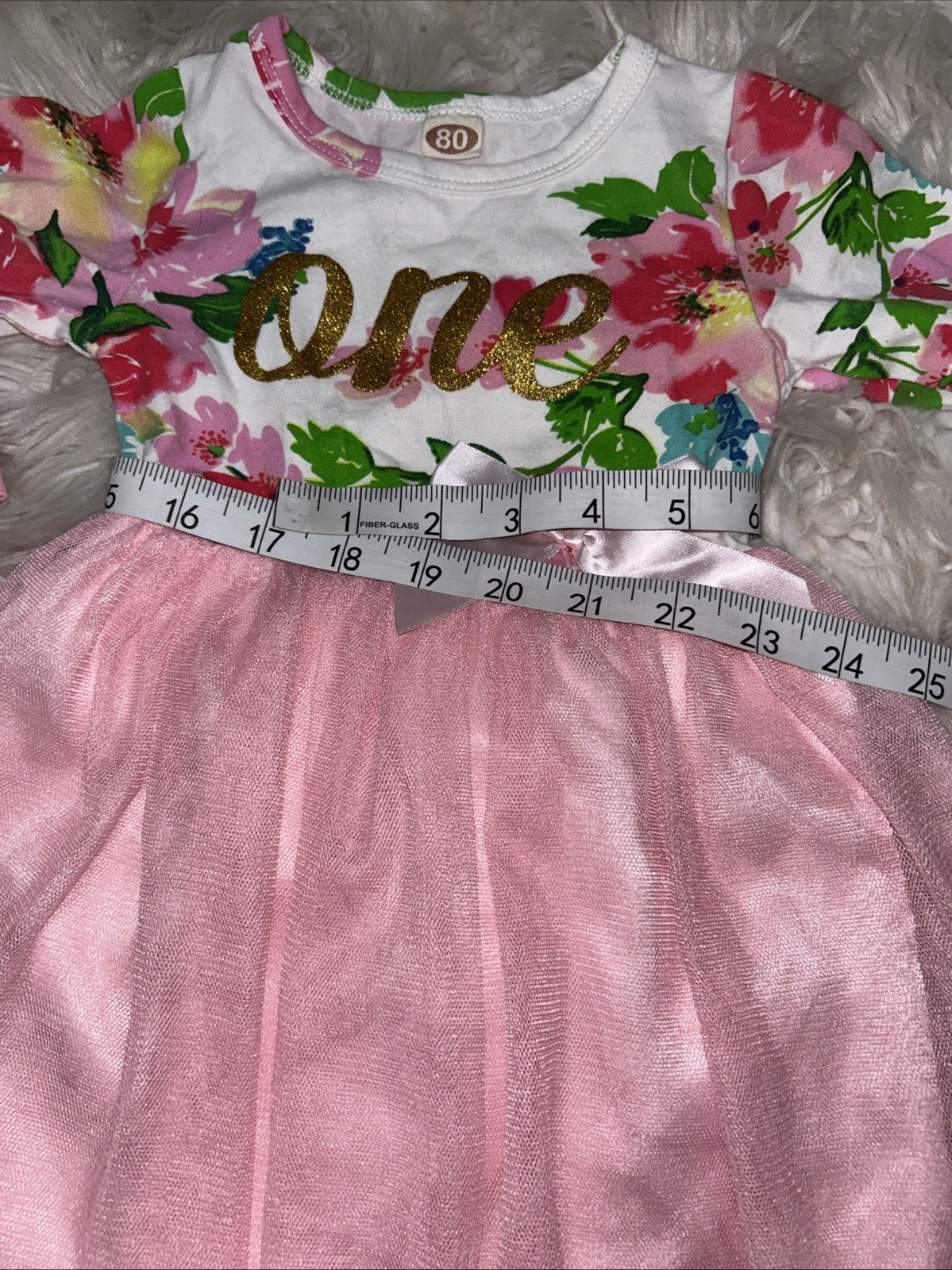 Baby Girl One White Long Sleeve Tutu Dress 12 -18 Months 80 1st Birthday