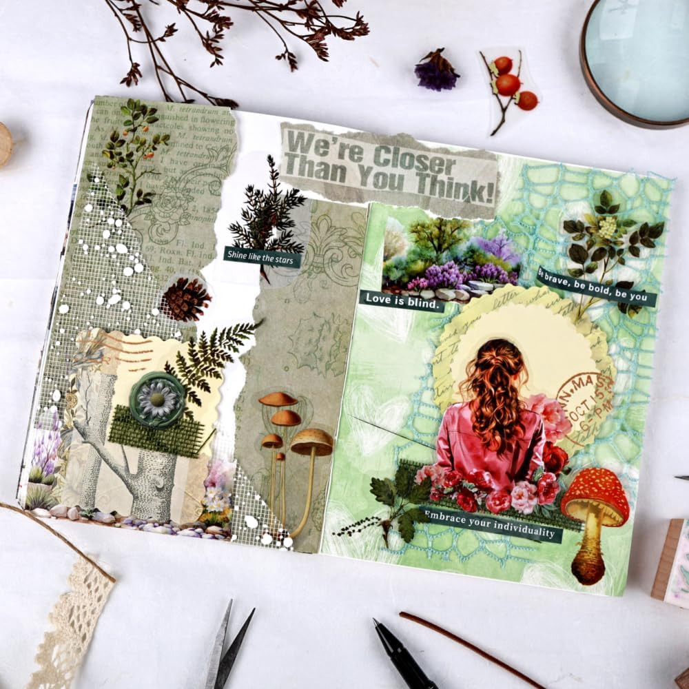 как выглядит Scrapbooking Supplies Kit, Vintage Aesthetic Scrapbook Kits for Adults, Green Fo фото
