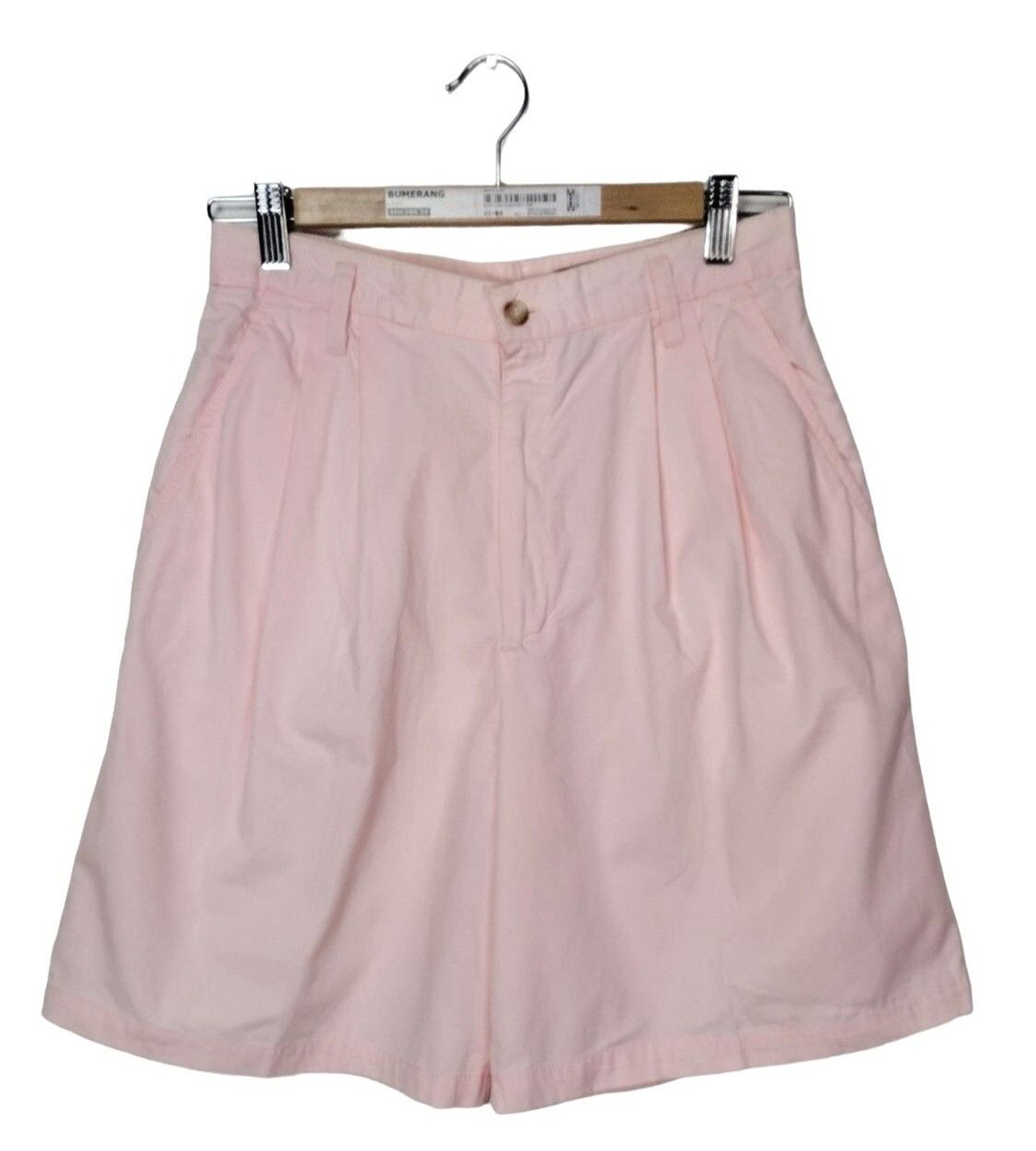 Vintage 80s 90s Pastel Pink Long Preppy Pleated-Front High-Waist Shorts S/M