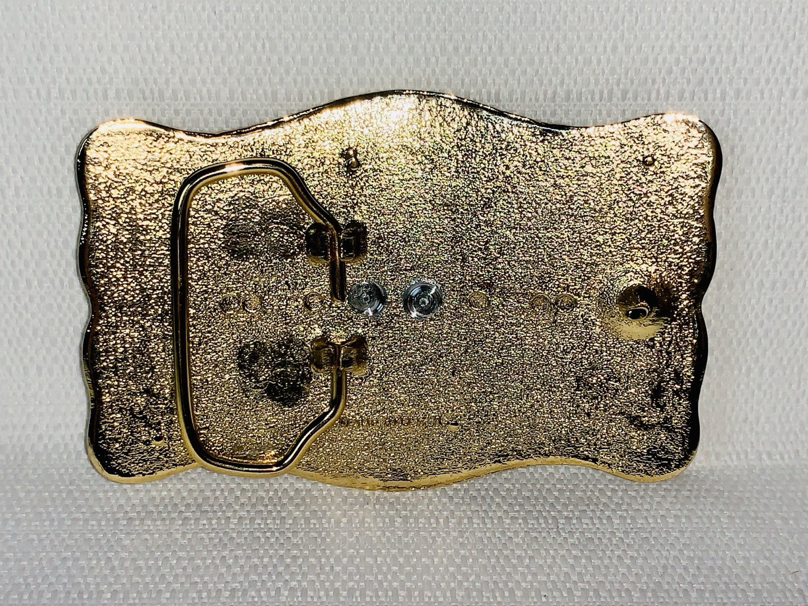 Vintage 1970 s Cowboy Bull Rider Belt Buckle Ornate Leaves Gold/Silver-Tone USA
