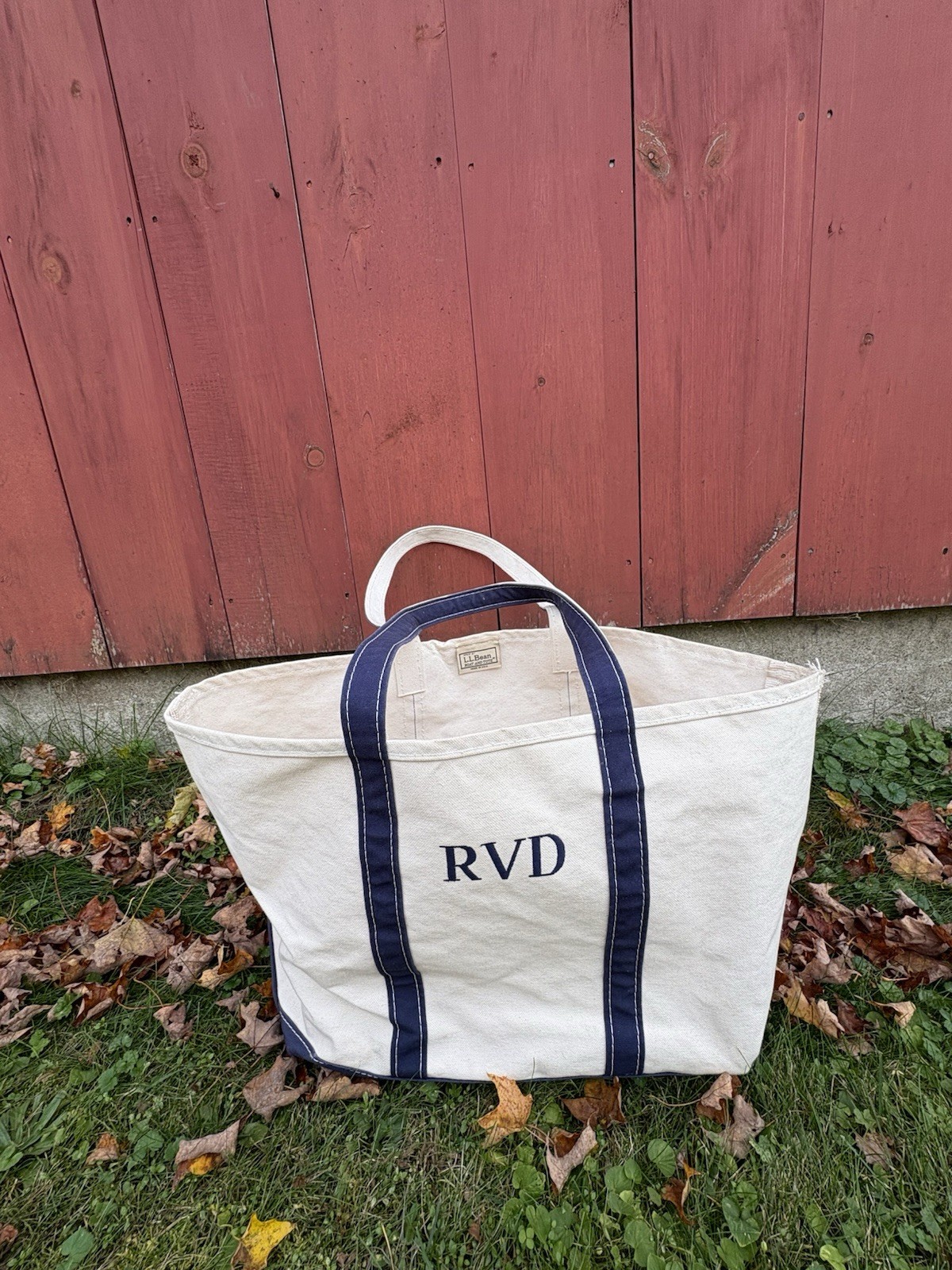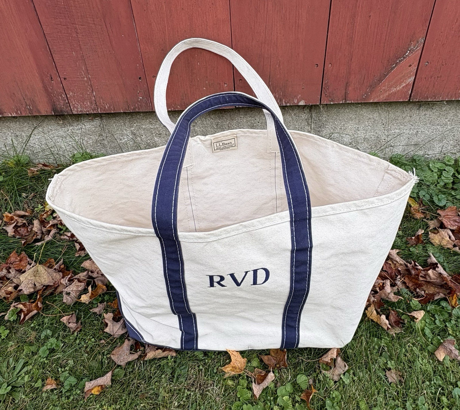 Vintage LL Bean Boat and Tote 80s Blue White Canvas Large USA Made Freeport ME