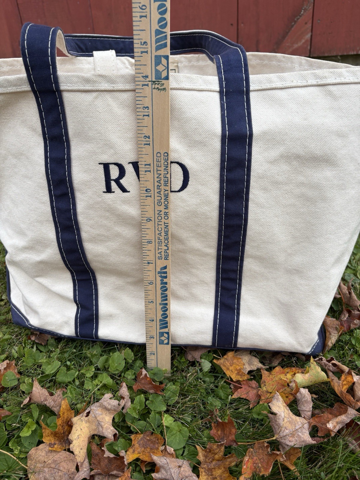 как выглядит Vintage LL Bean Boat and Tote 80s Blue White Canvas Large USA Made Freeport ME фото