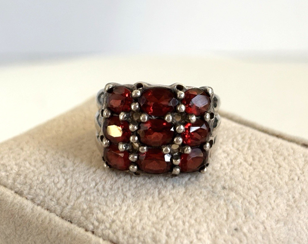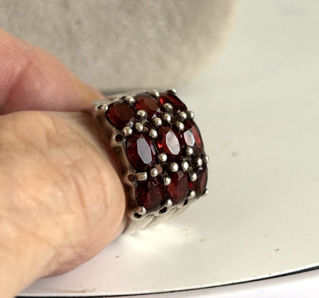 Sterling silver and garnet ring oval faceted Garnets