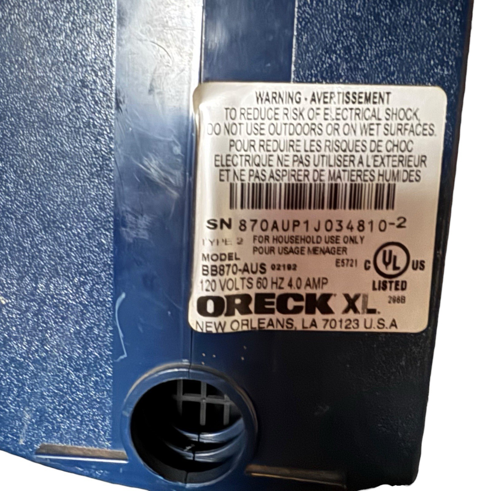 Blue Oreck XL Compact Canister Vacuum Cleaner BB870-AUS Works Cleaning Carpet