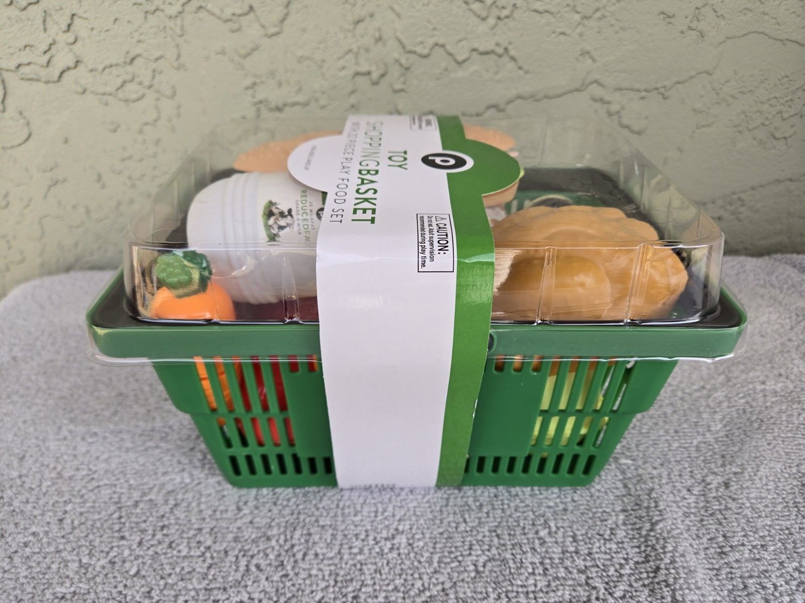 NEW Publix Toy Shopping Basket 22 Piece Play Food Set Eggs - Meat - Fruits