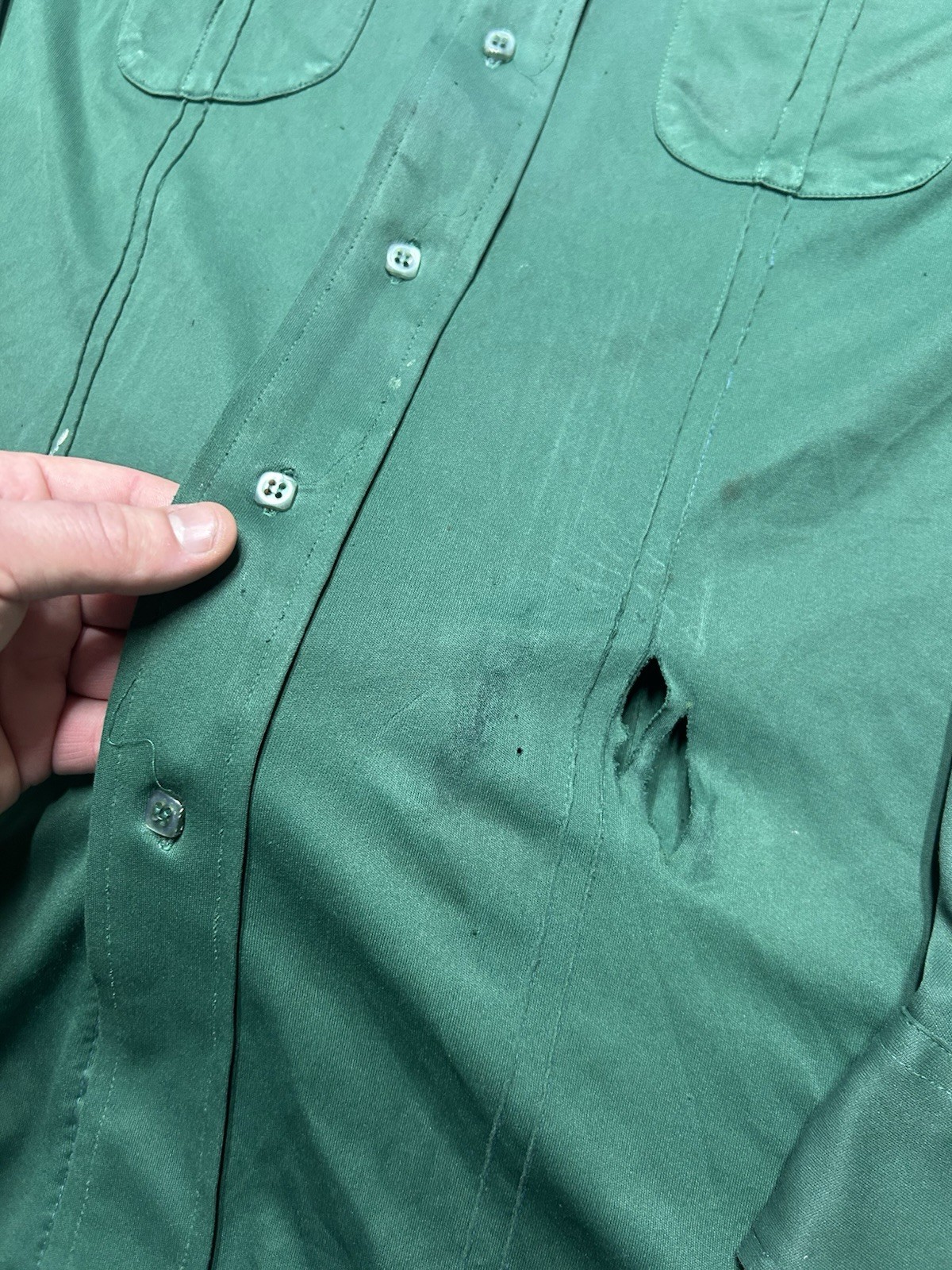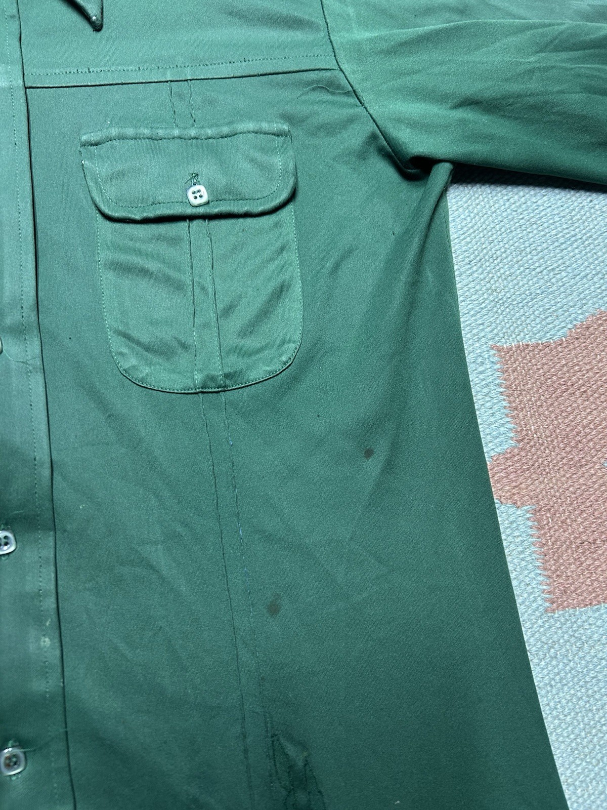 Vintage 70s long sleeve button shirt polyester dagger collar distressed Medium
