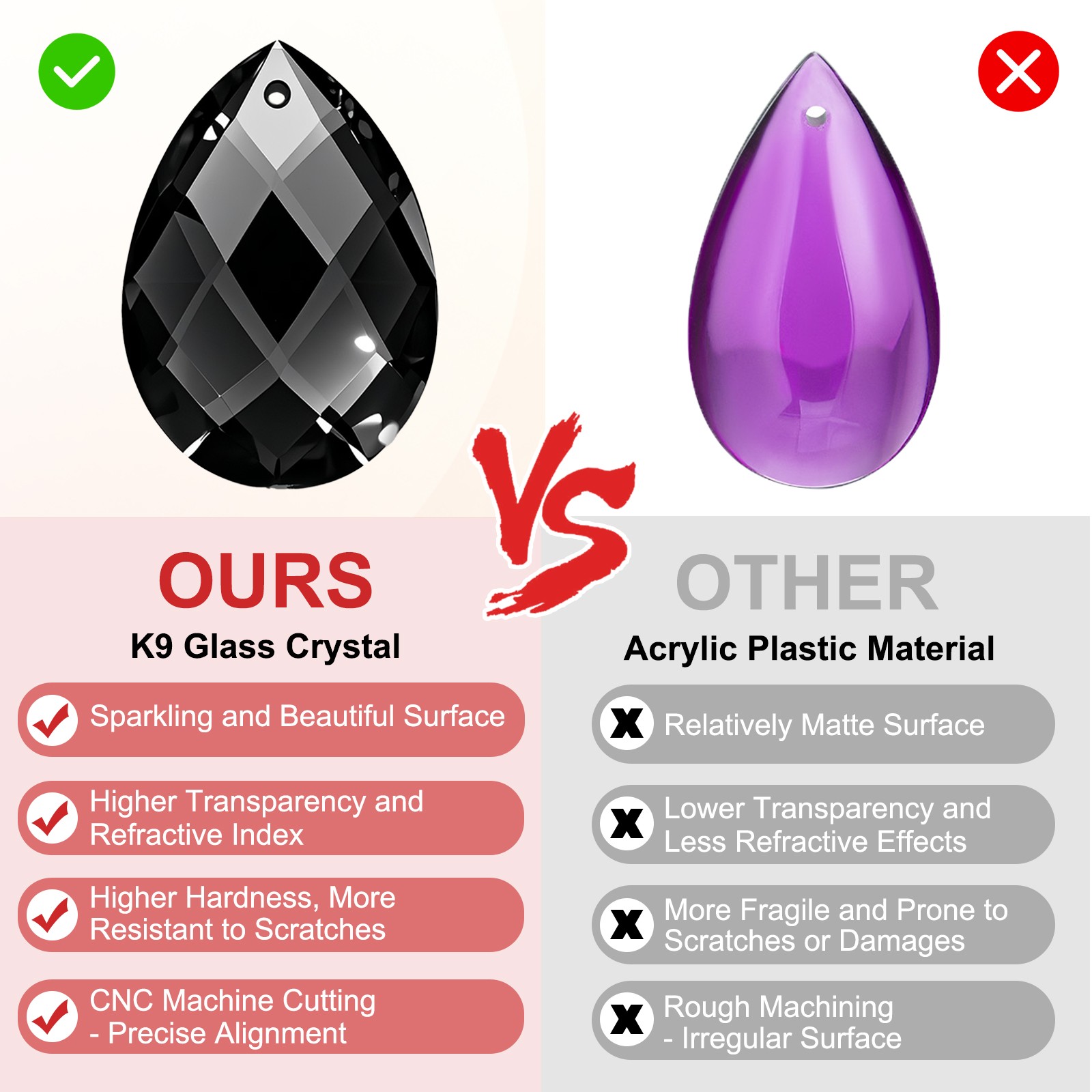 K9 Teardrop Beads, 6 Pack 38mm Grid Beads, Black