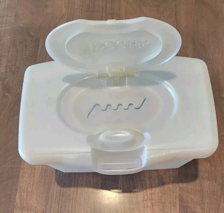 как выглядит Huggies Wipes Container Full Size Pop Up Feature EMPTY Plastic Off White фото