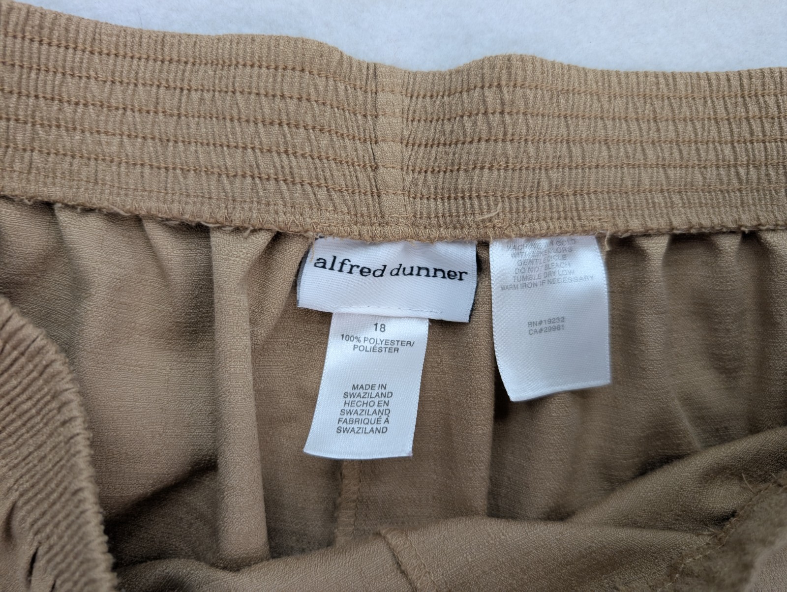 как выглядит Alfred Dunner Womens Pants Size 18 Tan Brown Elastic Waist Pull-On Pockets фото