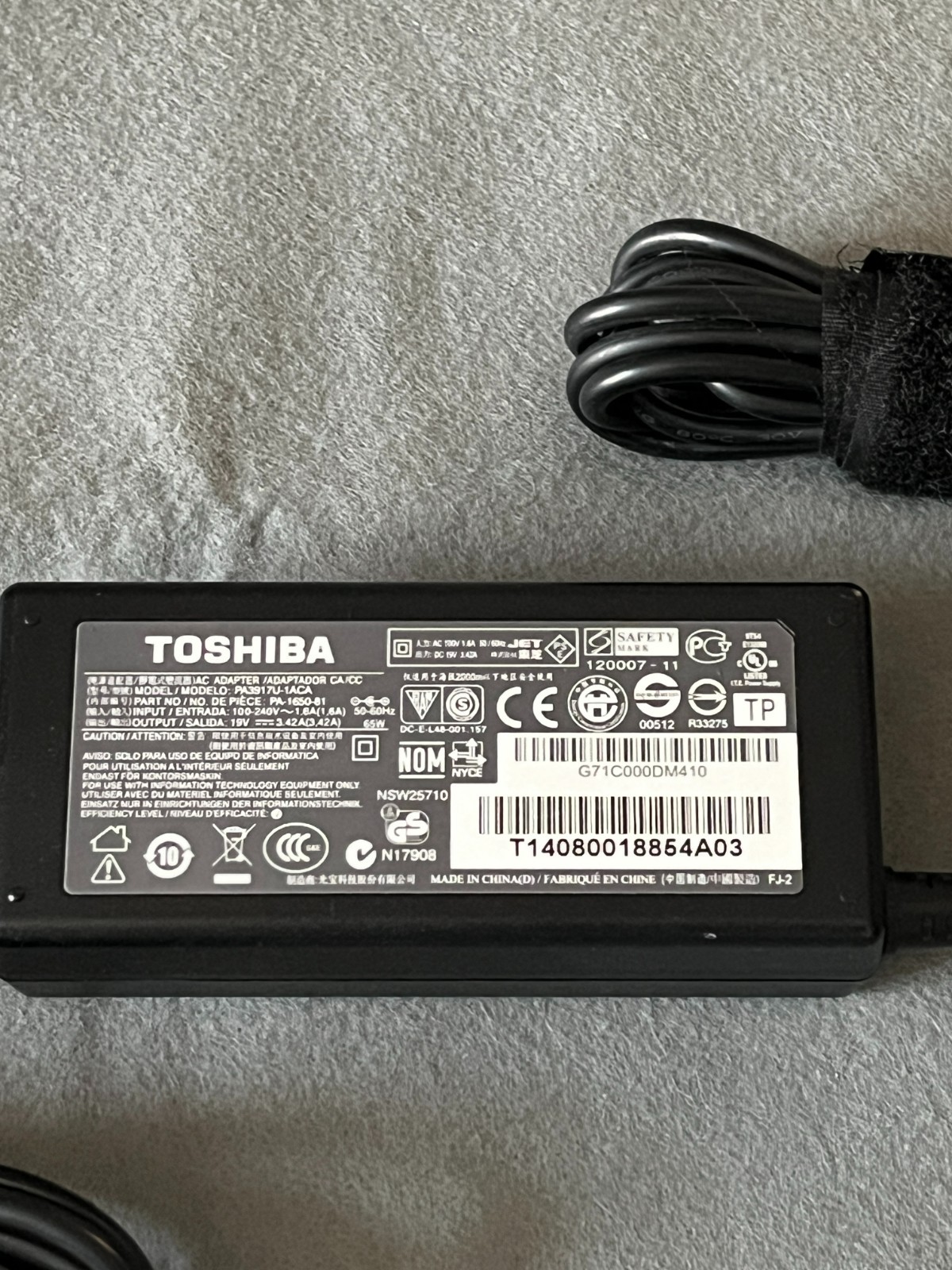 как выглядит Genuine Toshiba AC Adapter Power Supply PA3917U-1ACA 19V 65W фото