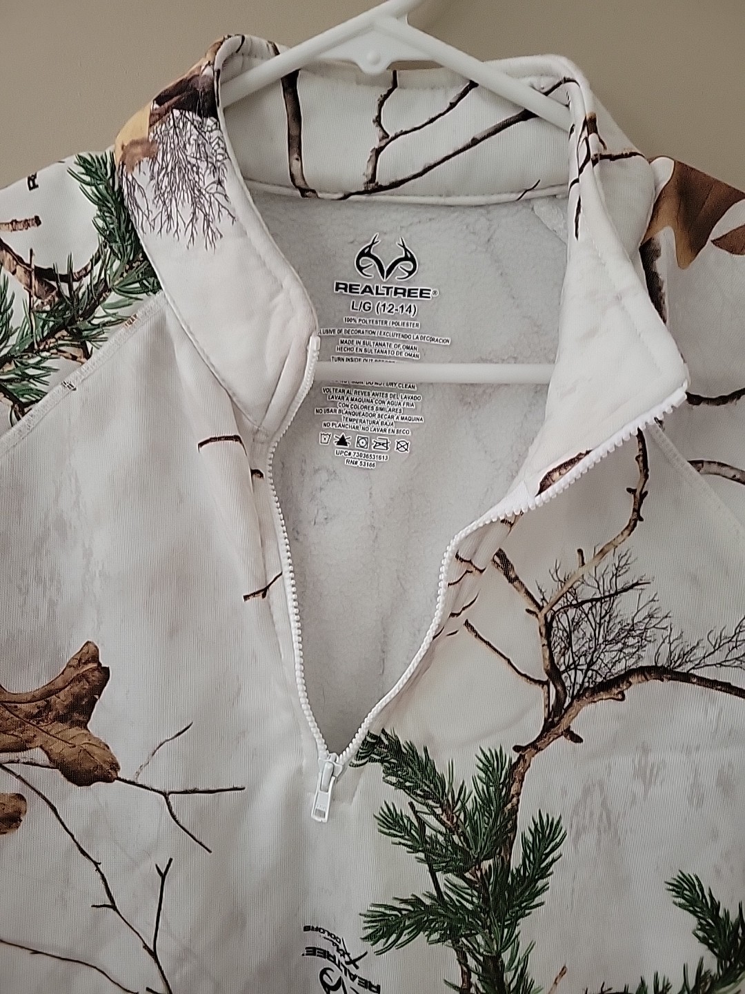 как выглядит Realtree Pullover Camo White Fleece Quarter Zip 100 Polyester Youth L 12-14 фото