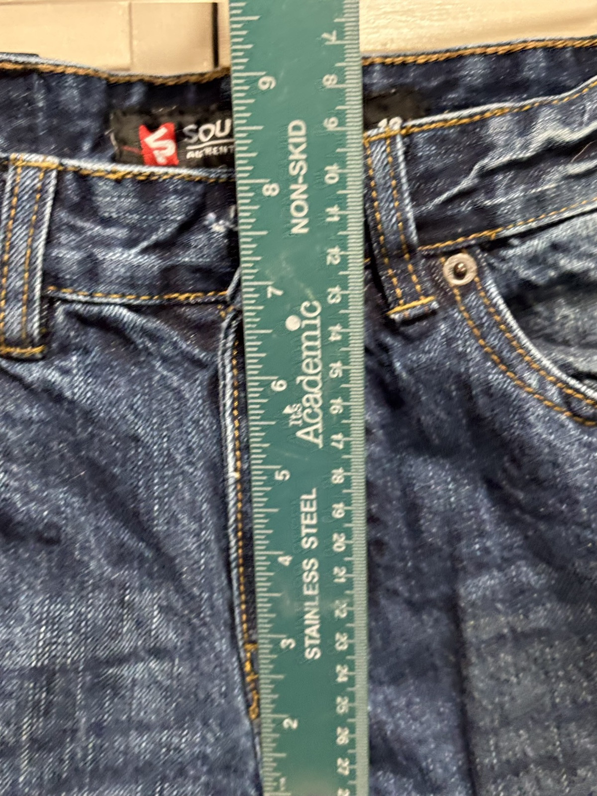 как выглядит Southpole Boy s Sz 12 Blue Jeans Dark Wash Logo Zipper Pockets фото