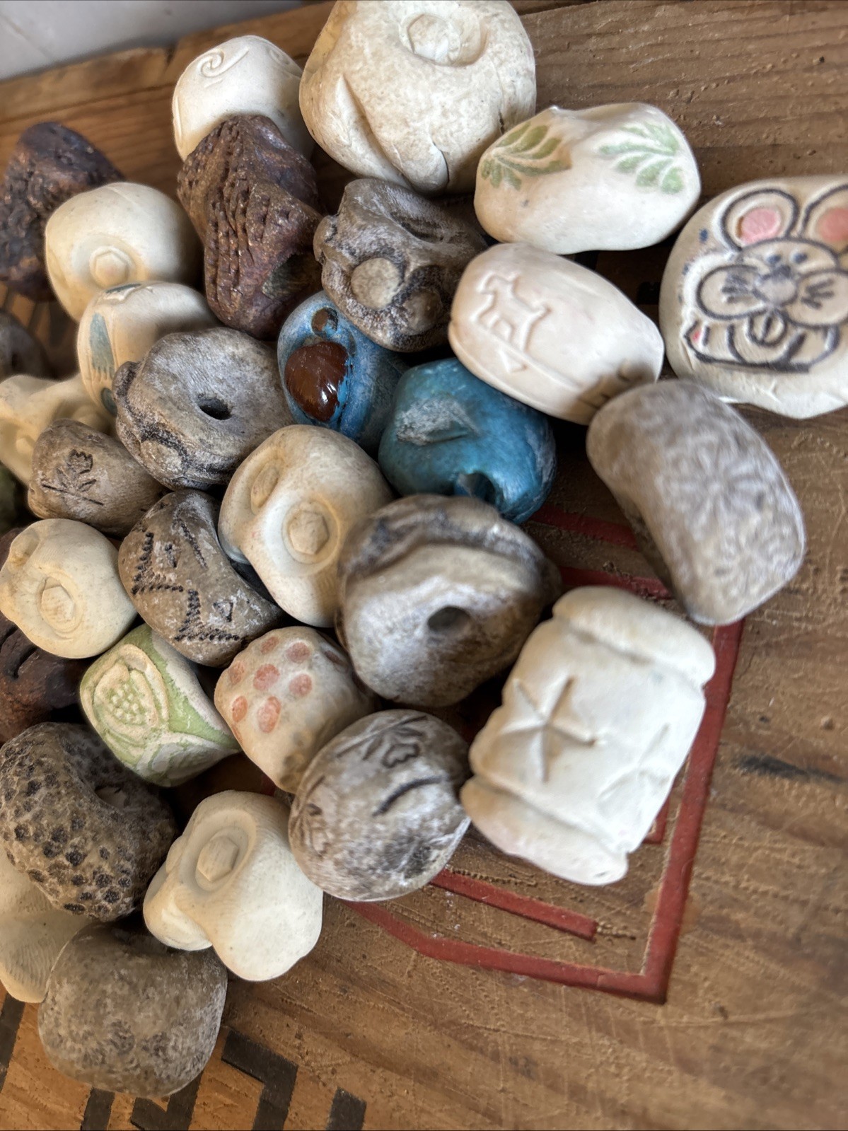 VTG Macrame Beads Ceramic Handmade Lot of 27 Plus 9 Face Pieces Small/Large Hole