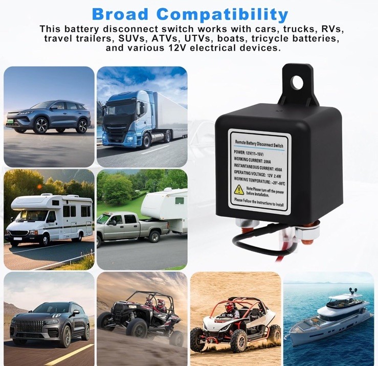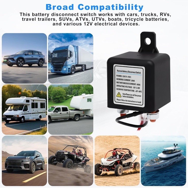 Remote Battery Disconnect Switch 12V 120A/200A/240 A/250A, Side Post DC12V 200A