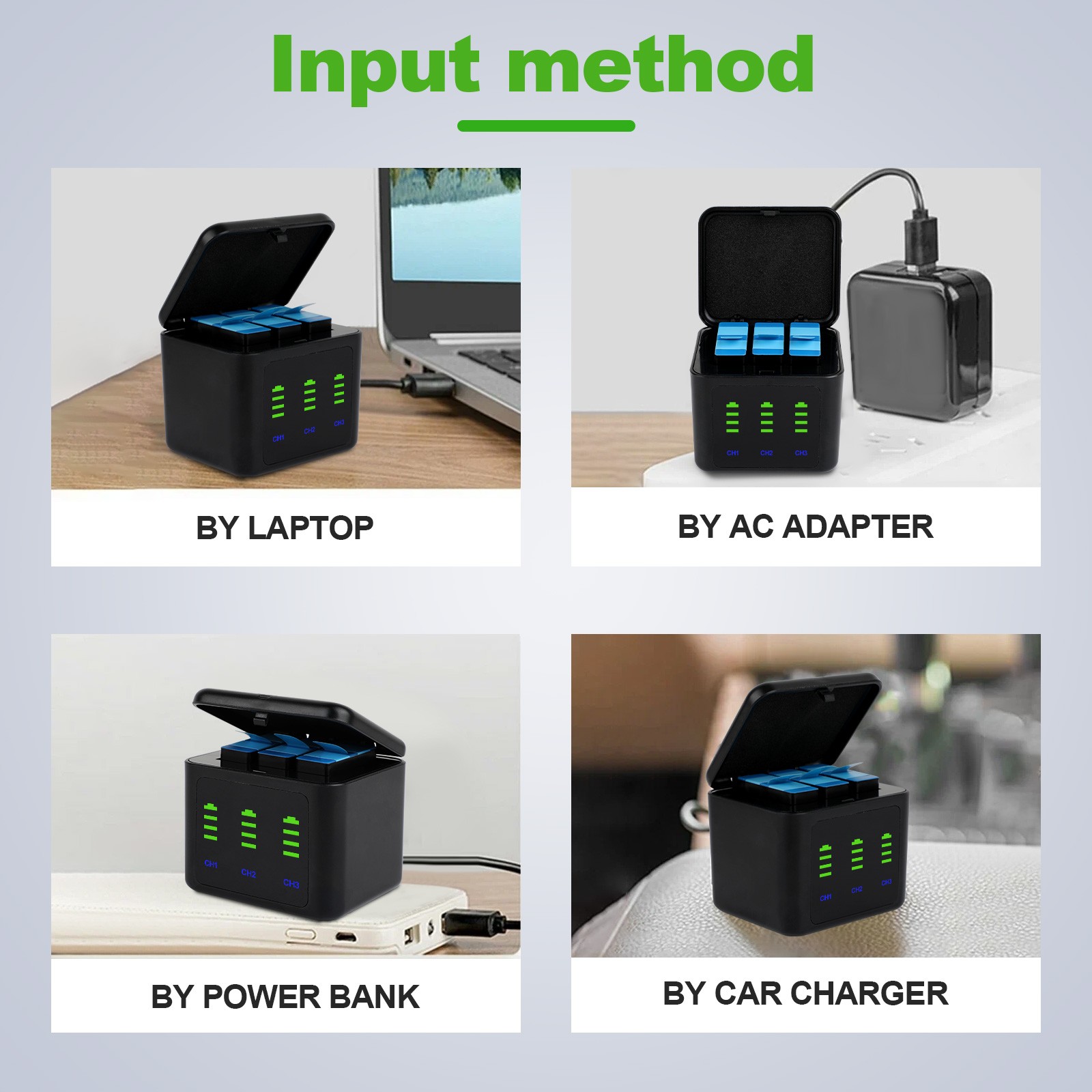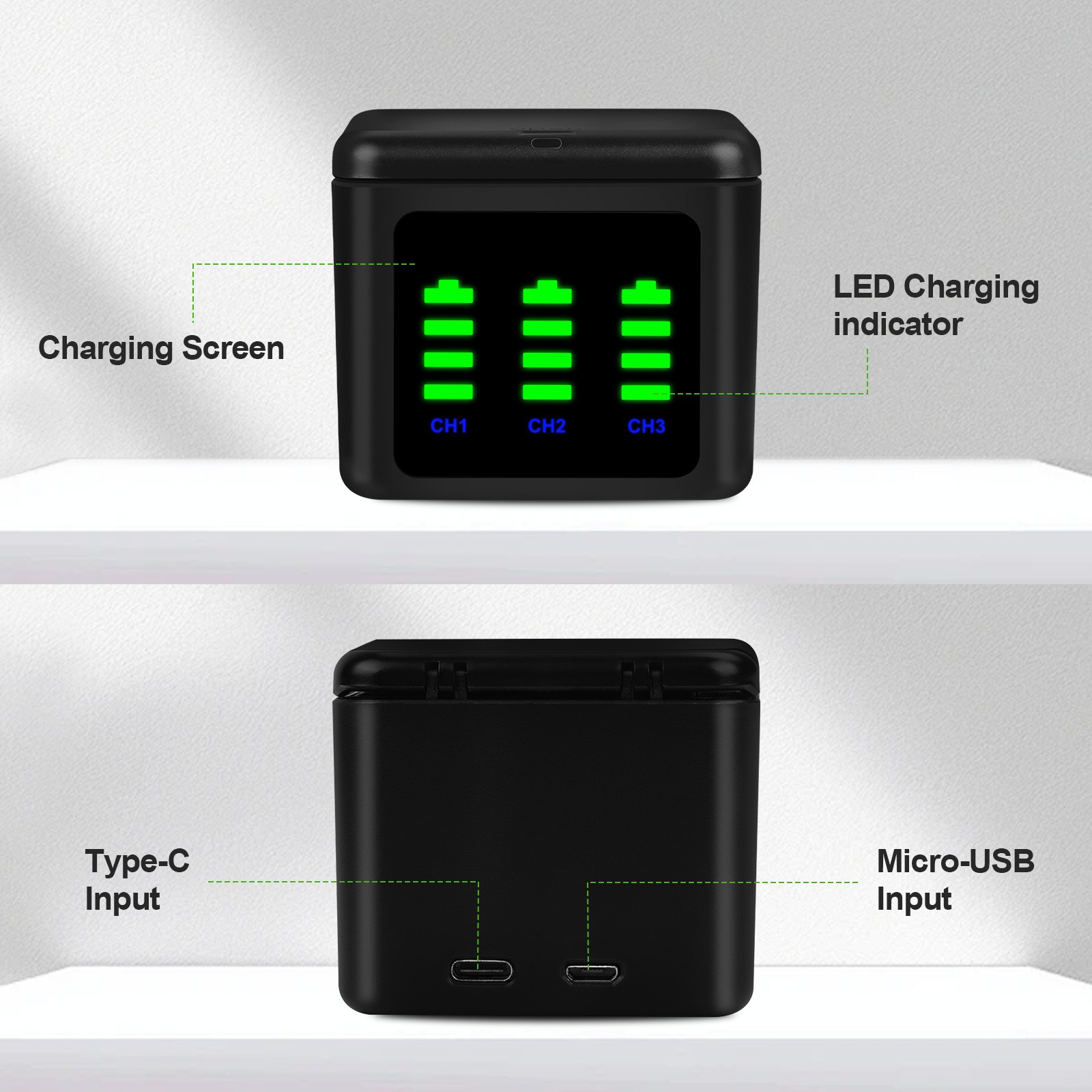 GoPro Dual Battery Charger For GoPro HERO 12 11 10 9 Black 3 Batteries