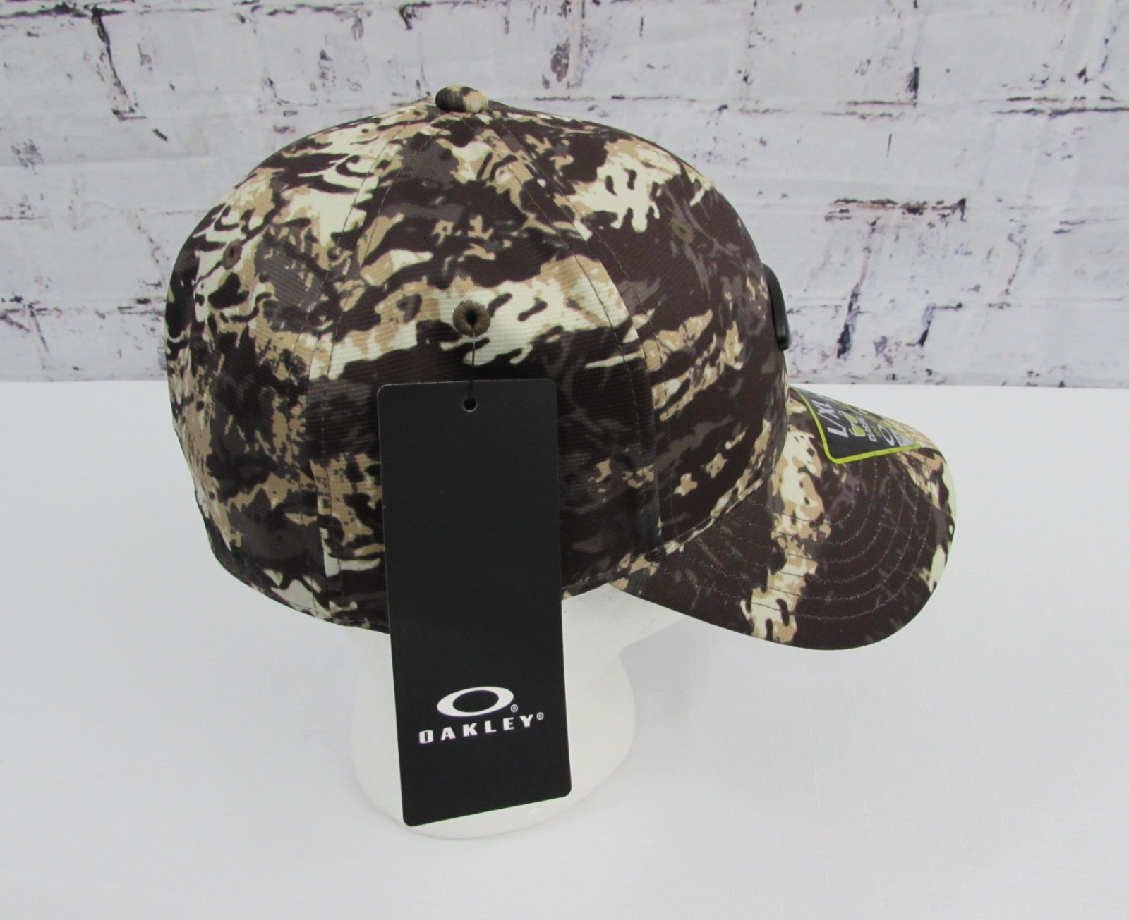 как выглядит OAKLEY "TINCAN" CAMO FLEX FIT HAT L/XL CAMO COLORS FRONT BACK LOGOS NWT. фото