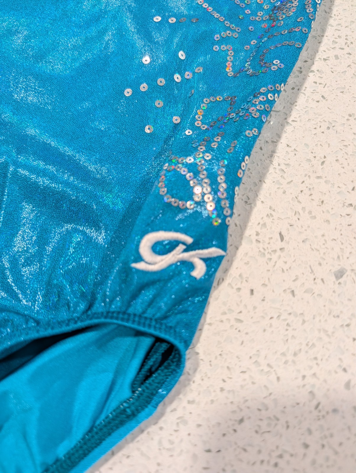 как выглядит BEAUTIFUL GK Elite Child medium Gymnastics Dance Leotard Mystique Teal SEQUINS фото