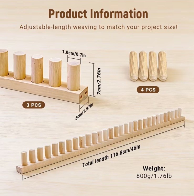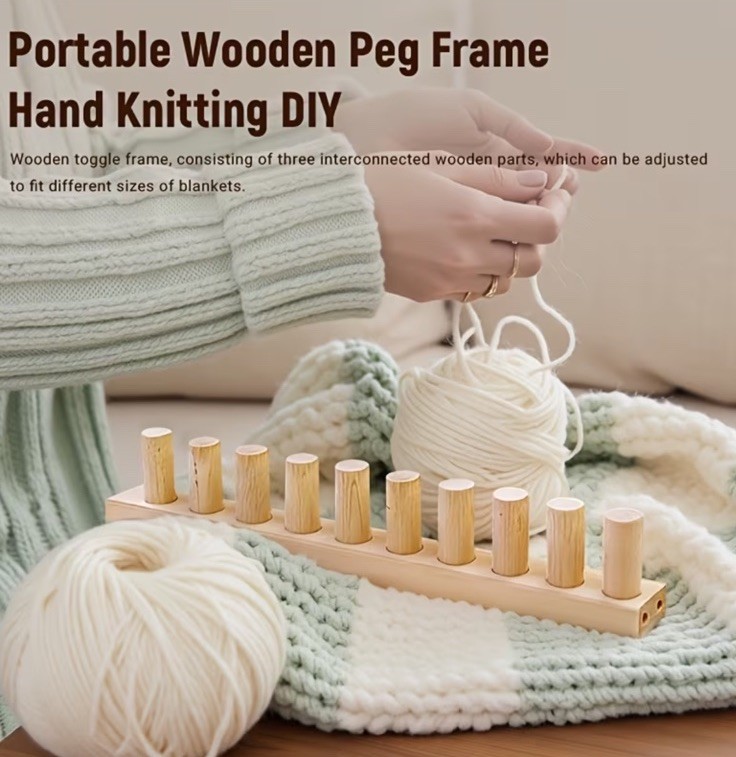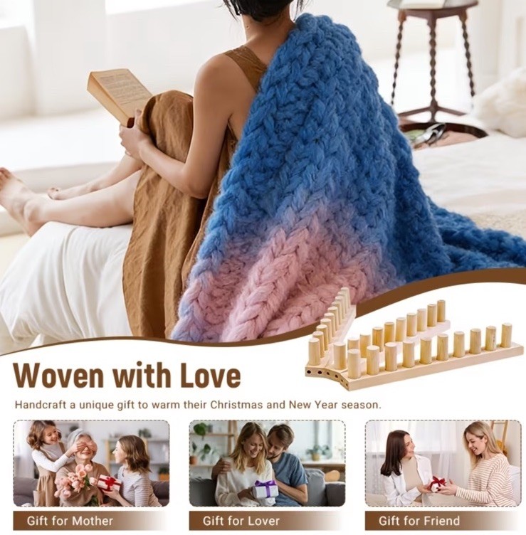 Adjustable Chunky Blanket Loom Kit - Wooden Knitting Board, Portable. 46 Long.