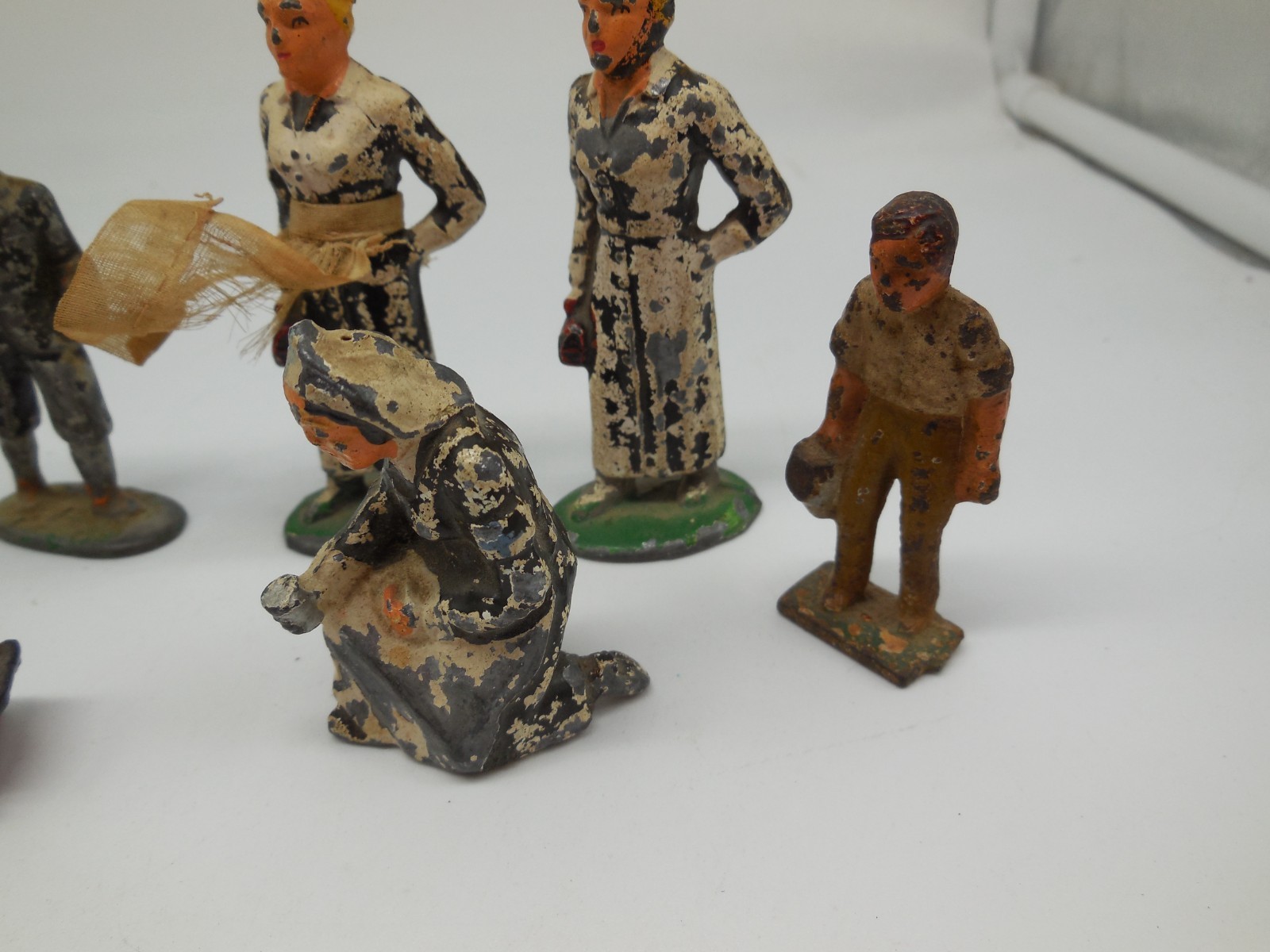 как выглядит AN2 VINTAGE LEAD FIGURES MARKED MADE IN USA WOMAN Soldiers Children Lot of 9 фото