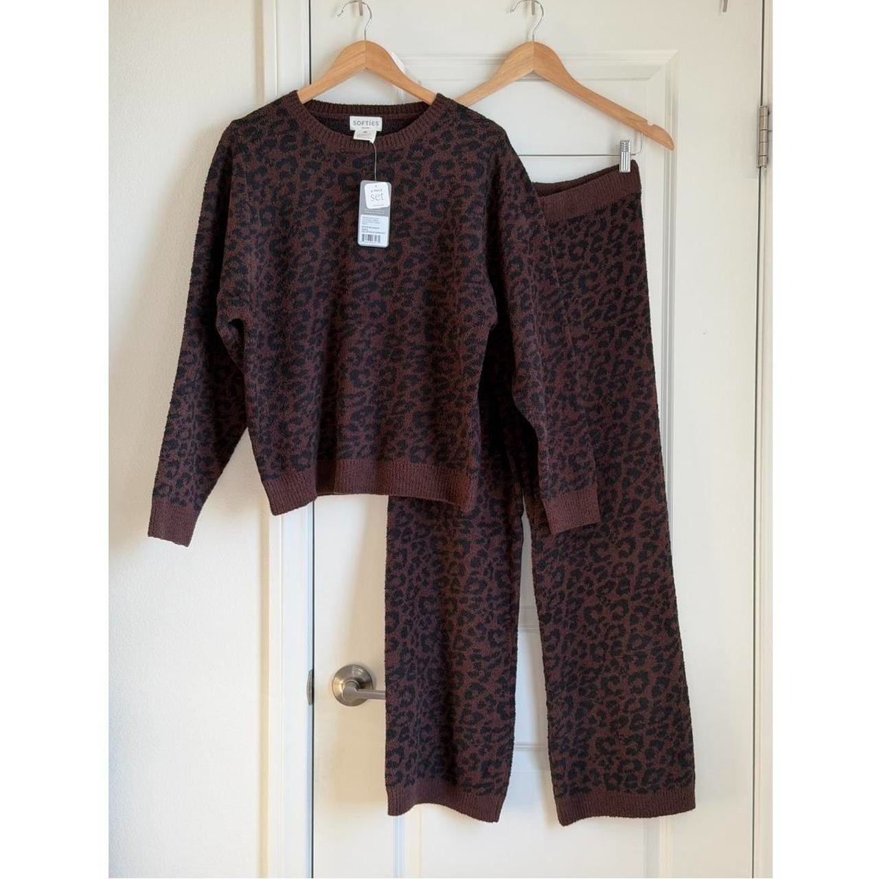 Softies Marshmallow Leopard Crew Neck Lounge Set in Wild Espresso, Size Small