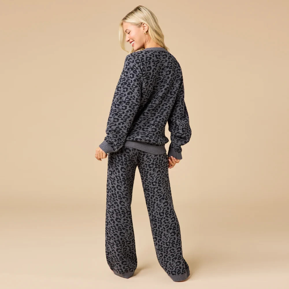 Softies Marshmallow Leopard Crew Neck Lounge Set in Wild Grey, Size Large