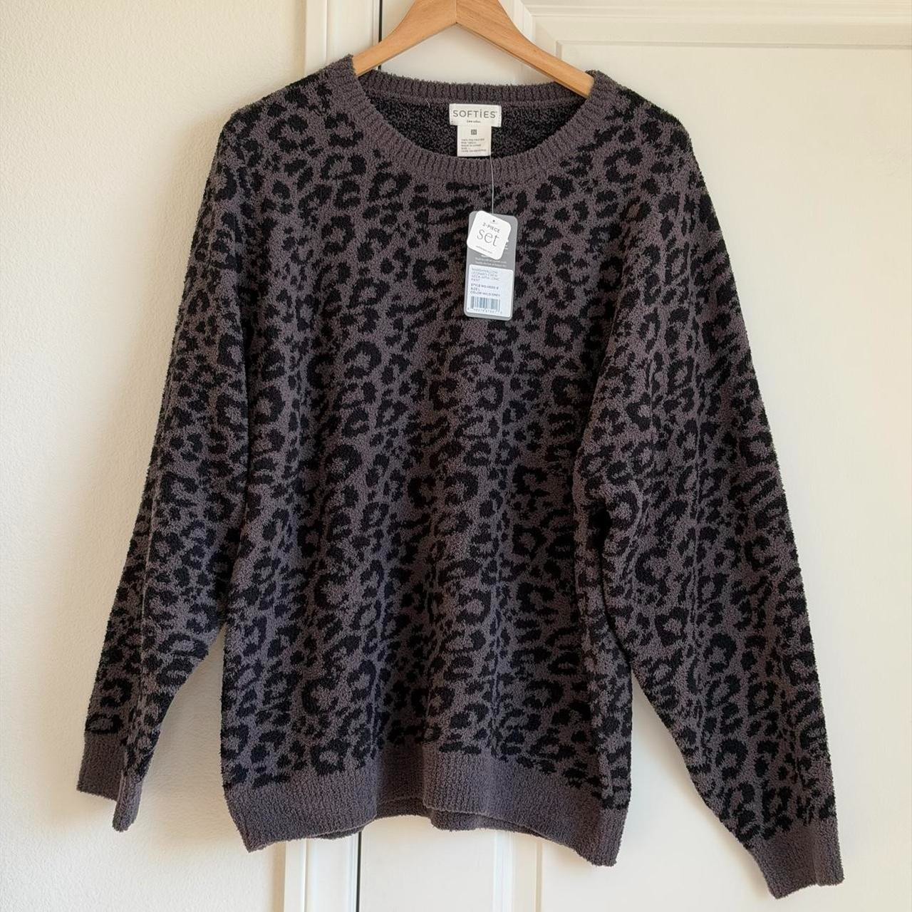 как выглядит Softies Marshmallow Leopard Crew Neck Lounge Set in Wild Grey, Size Large фото