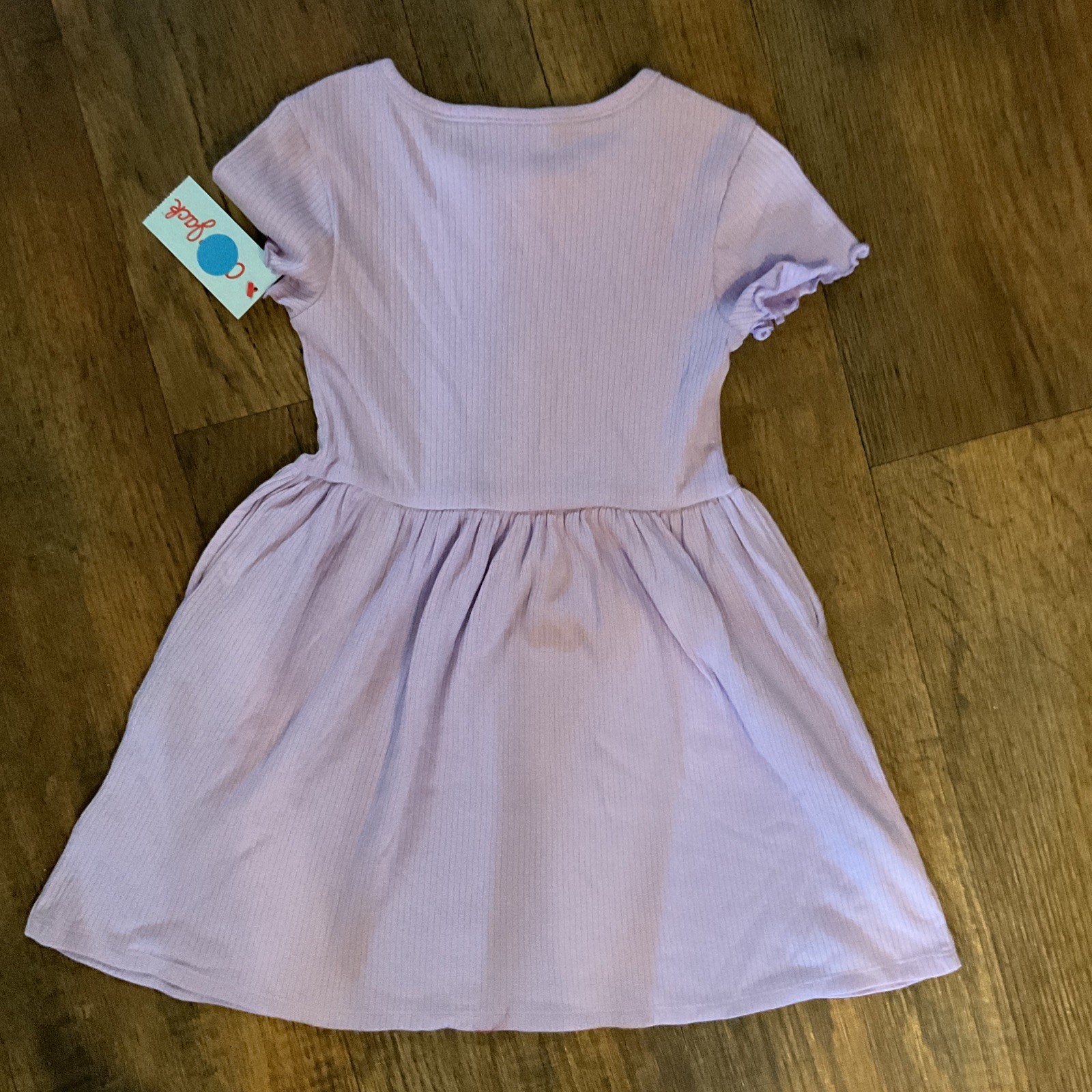 как выглядит Cat Jack Girls Lavender Ribbed Short-Sleeve Dress XS 4/5 Pockets фото