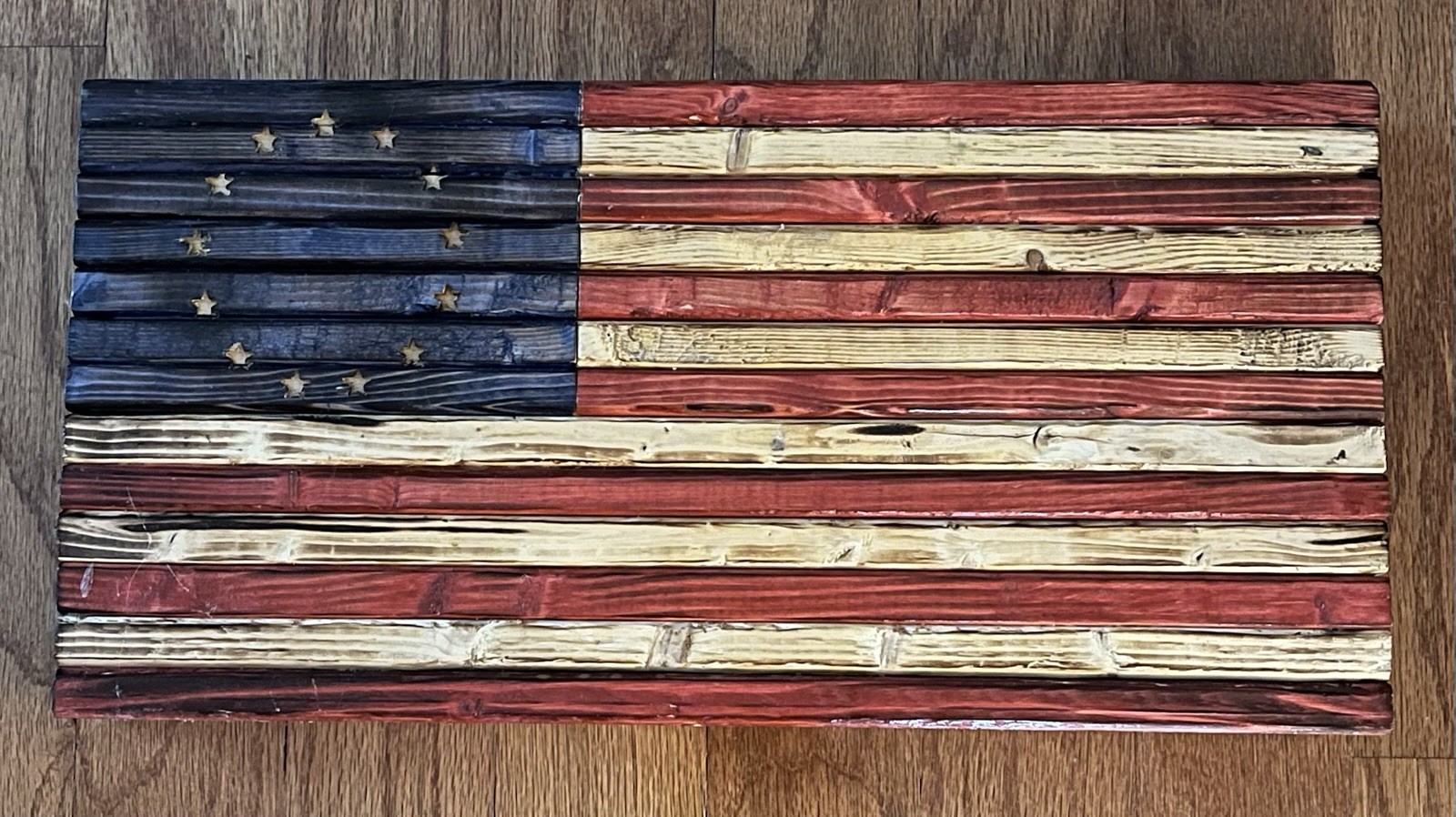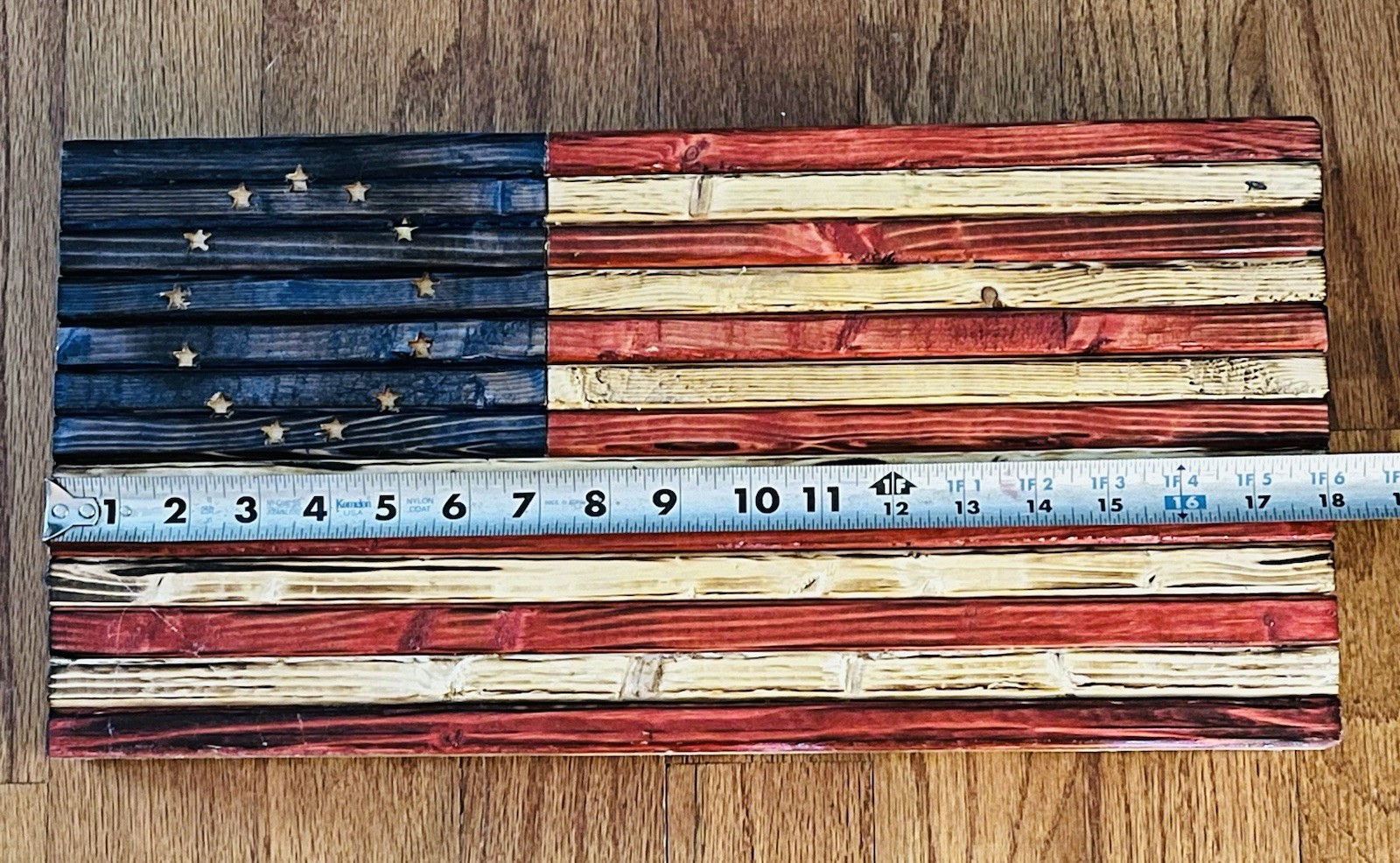 Handmade Wooden American Flag Wall Art 18 Flags Forever USA Rustic Patriotic