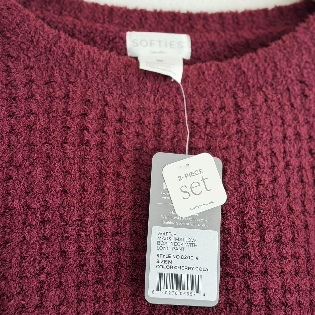 как выглядит Softies Waffle Marshmallow Boatneck Lounge Set in Cherry Cola, Size Medium фото