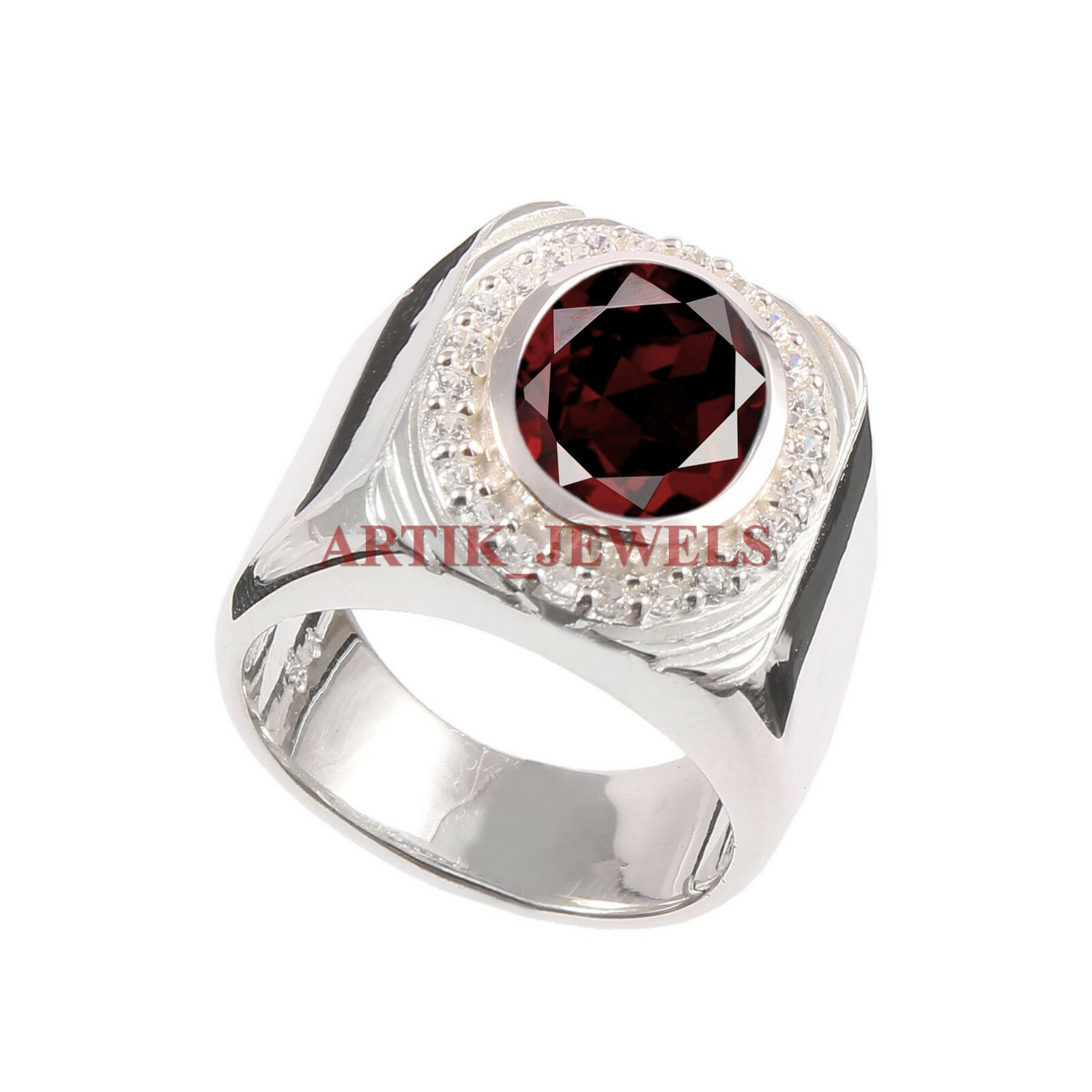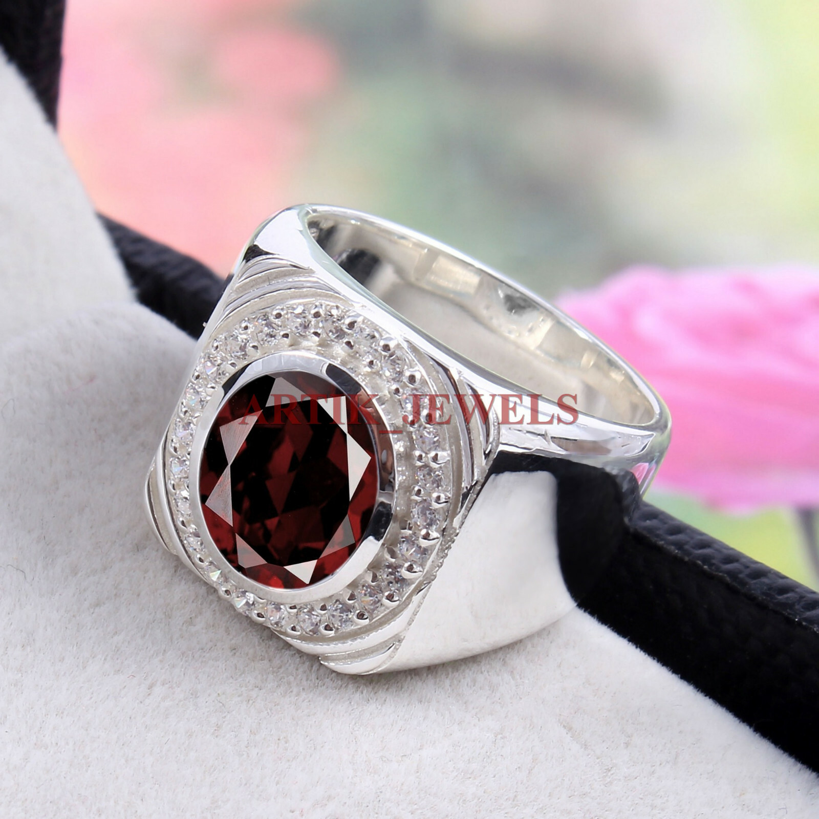 как выглядит Natural Garnet Gemstone with 925 Sterling Silver Ring for Men