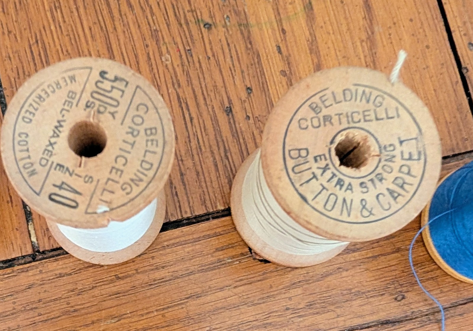 • Five vintage wood spools Belding Corticelli thread, Thread Different Colors