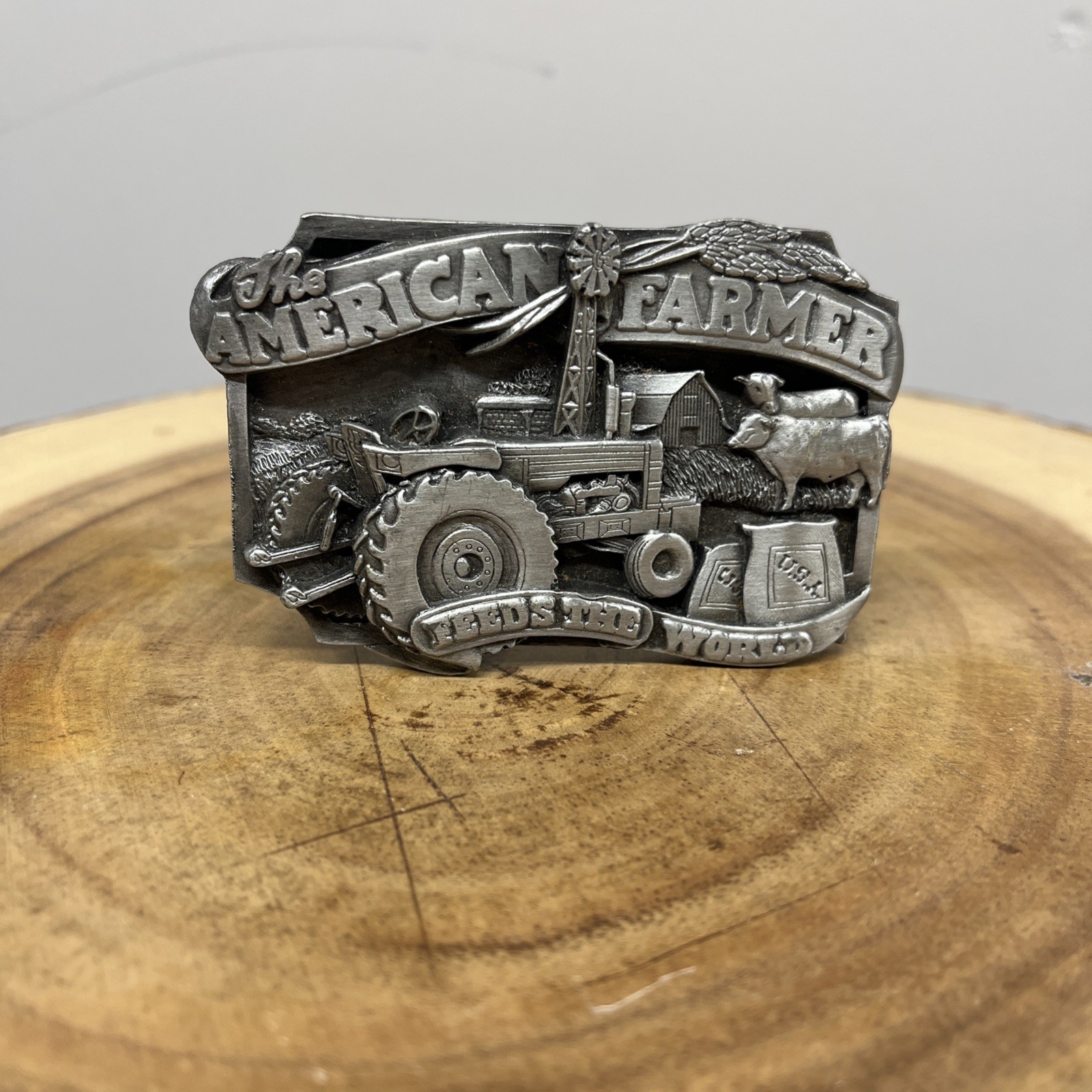 Vintage 1983 THE AMERICAN FARMER FEEDS THE WORLD belt buckle