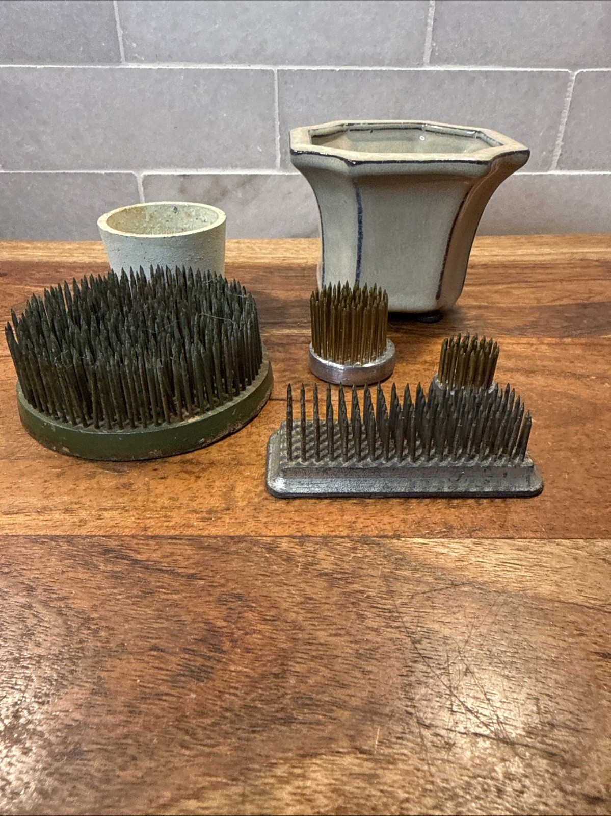 Vintage Lot of 6 Metal Spike Flower Frogs Assorted Size Shapes